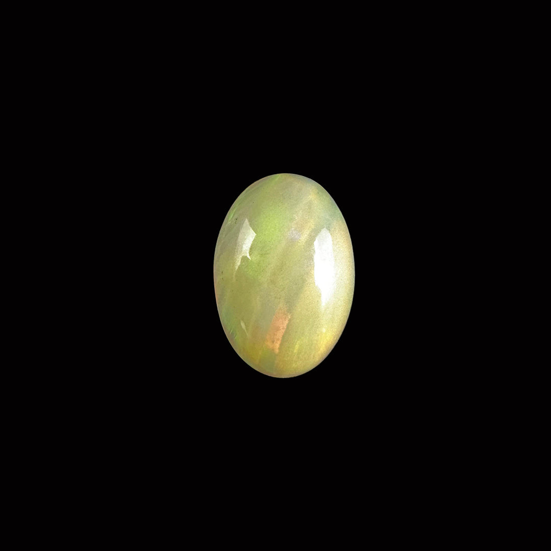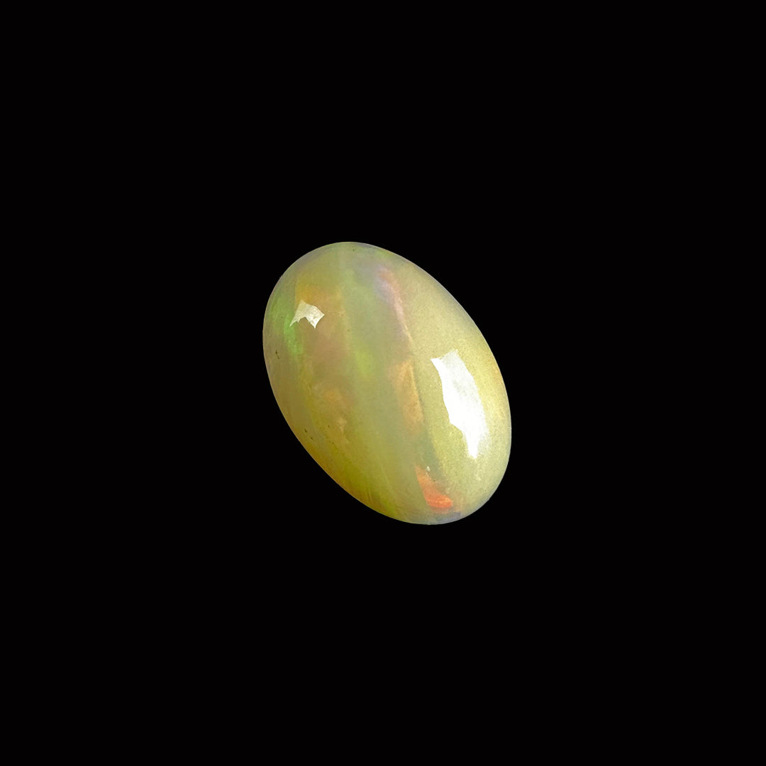 Opal is a captivating 2.65-carat gemstone known for its iridescent play of colors, ranging from vibrant blues and greens to warm reds and yellows. Formed from hydrated silica, opals are cherished for their unique patterns and flashes of light, often resembling a cosmic display.