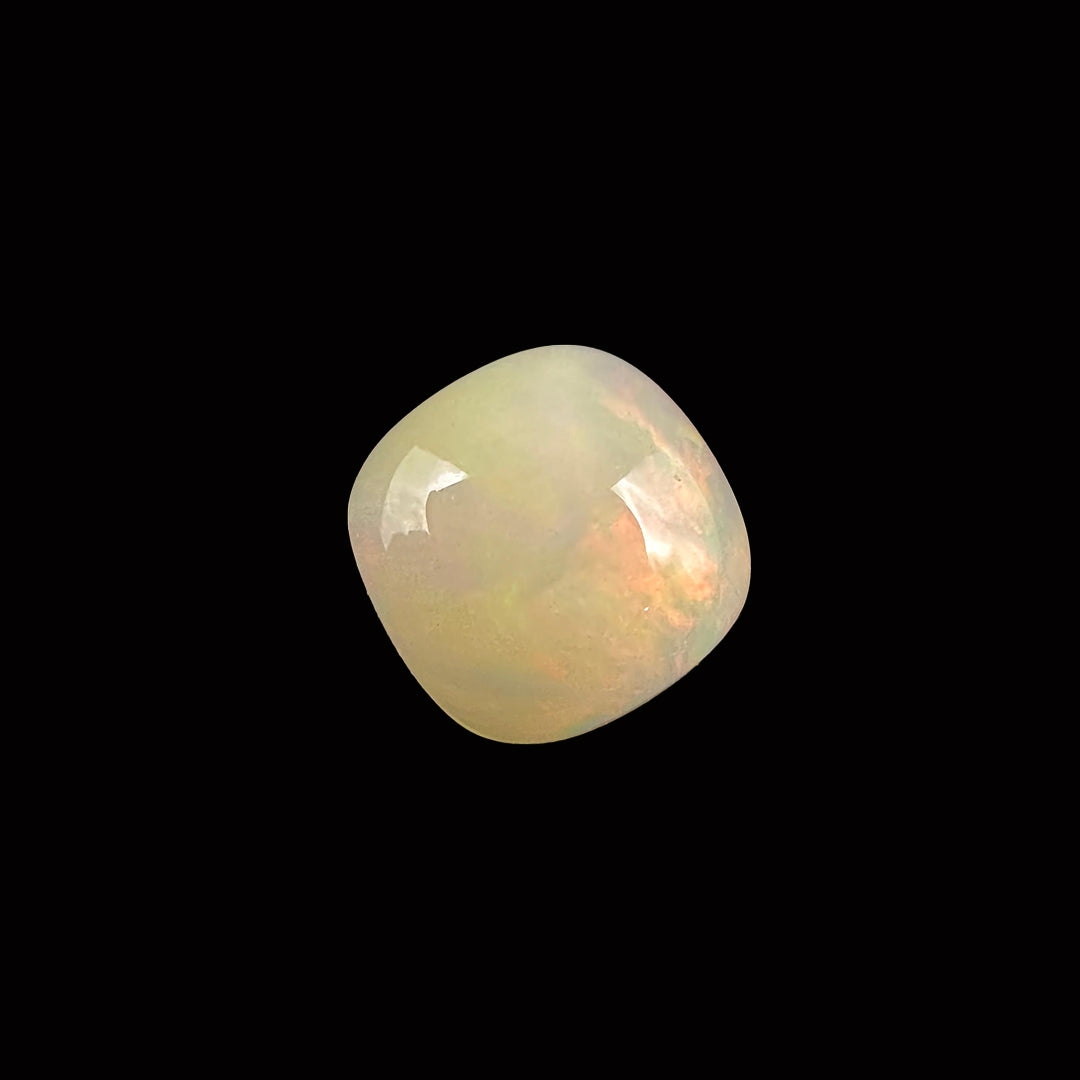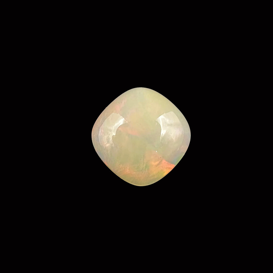 Opal is a captivating 2.7-carat gemstone known for its iridescent play of colors, ranging from vibrant blues and greens to warm reds and yellows. Formed from hydrated silica, opals are cherished for their unique patterns and flashes of light, often resembling a cosmic display.