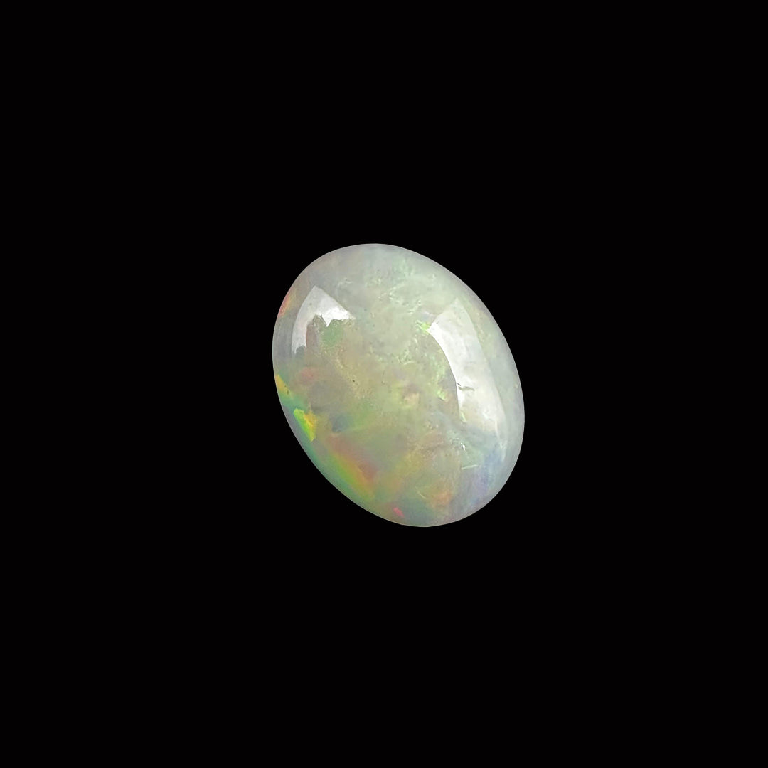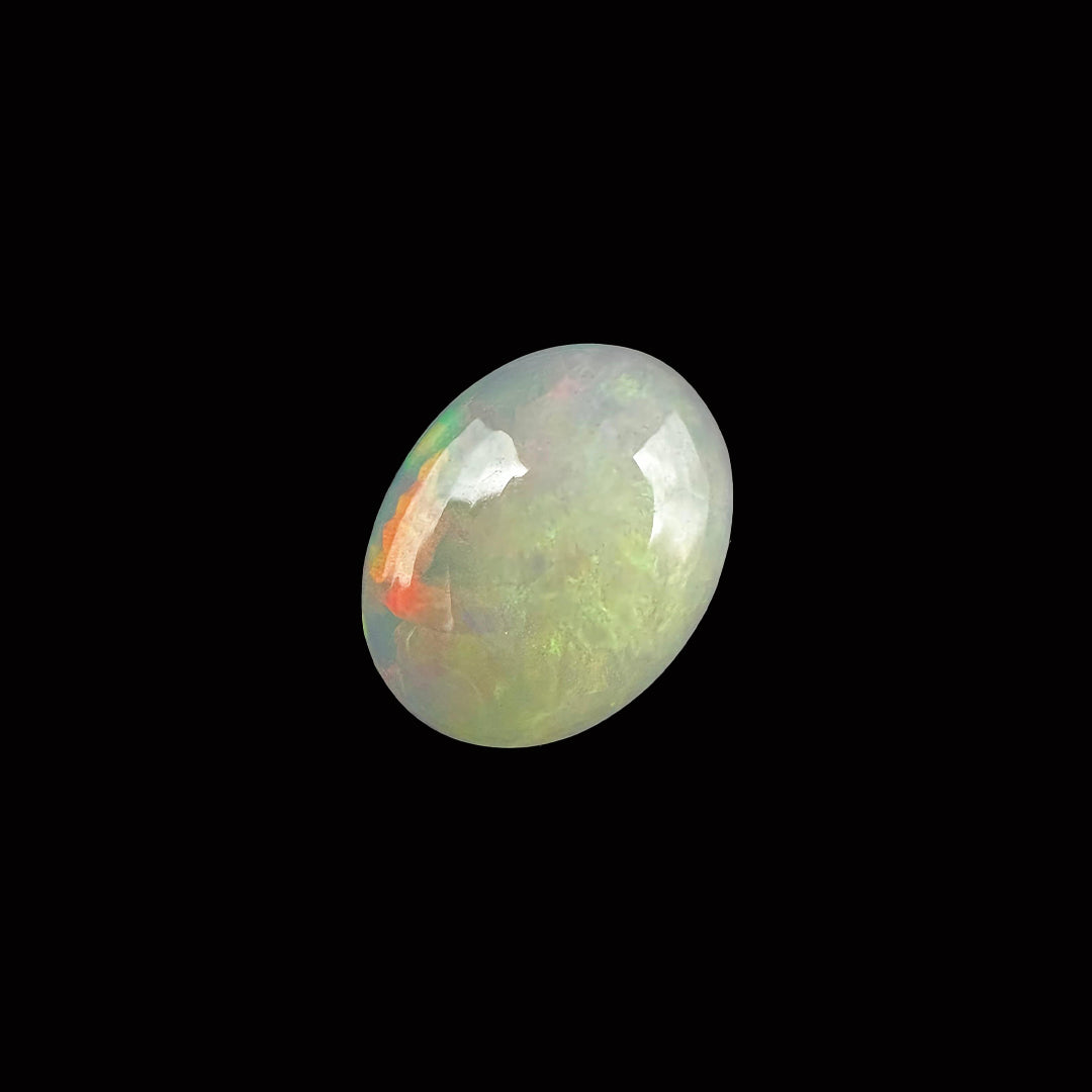 Opal is a captivating 2.9-carat gemstone known for its iridescent play of colors, ranging from vibrant blues and greens to warm reds and yellows. Formed from hydrated silica, opals are cherished for their unique patterns and flashes of light, often resembling a cosmic display.