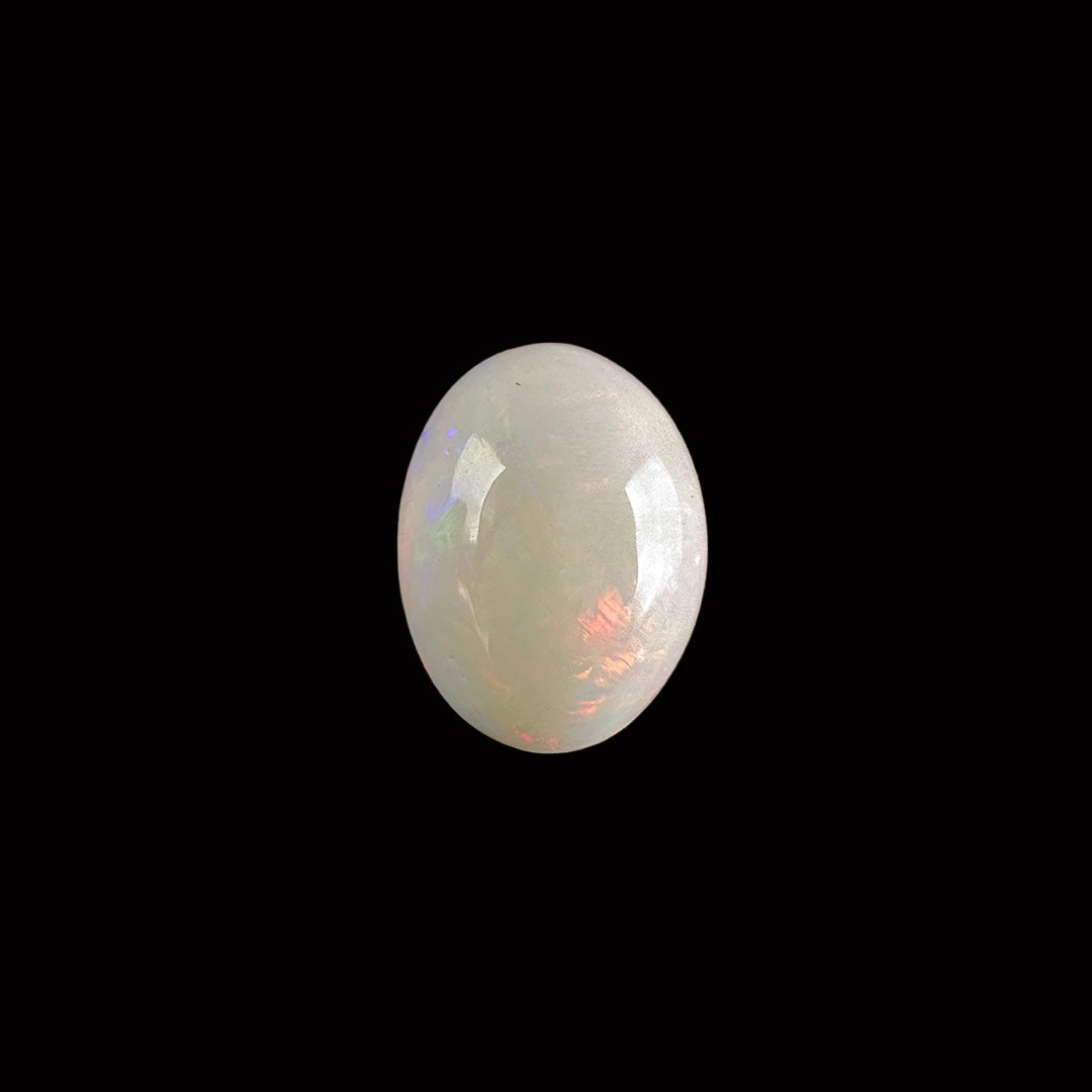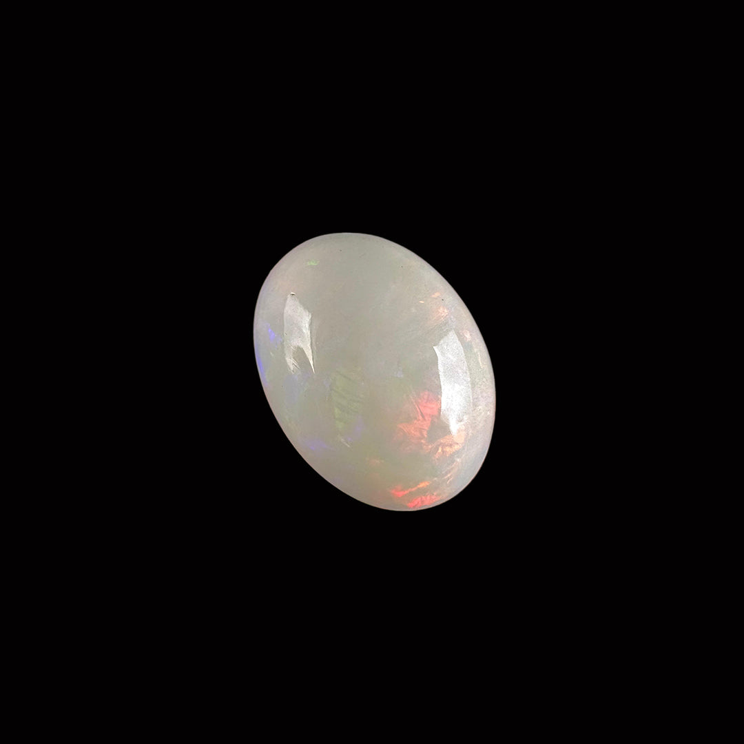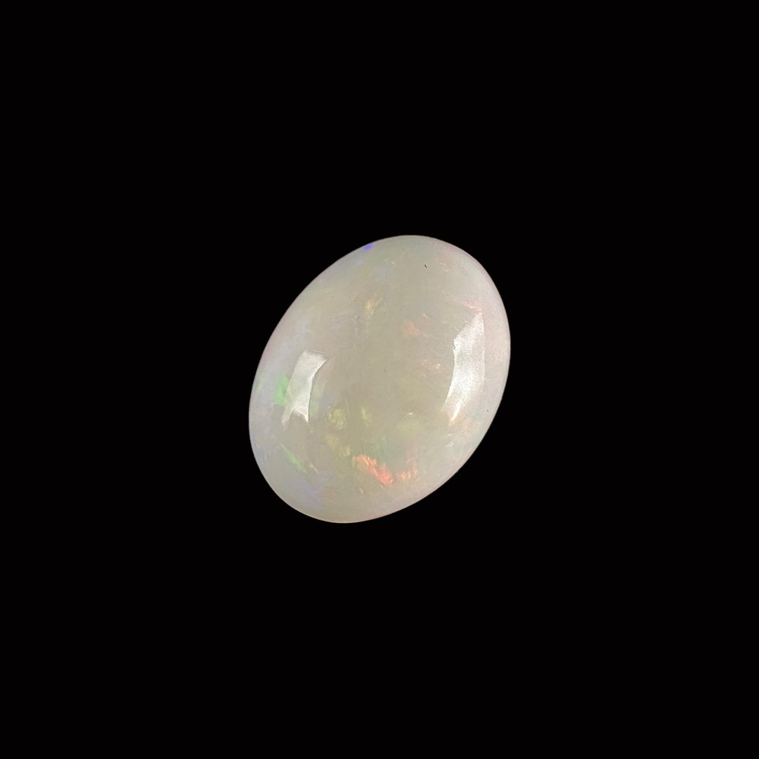 Opal is a captivating 3.85-carat gemstone known for its iridescent play of colors, ranging from vibrant blues and greens to warm reds and yellows. Formed from hydrated silica, opals are cherished for their unique patterns and flashes of light, often resembling a cosmic display.