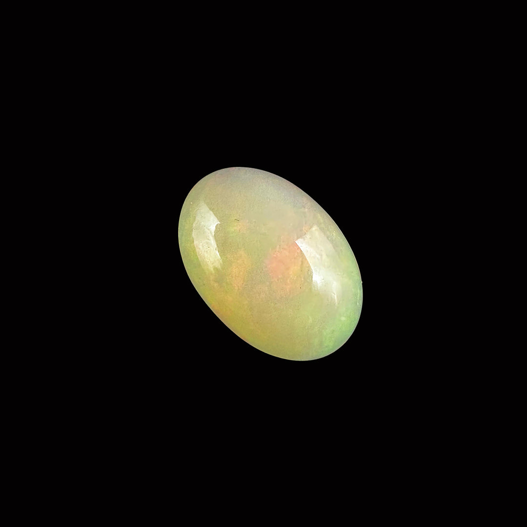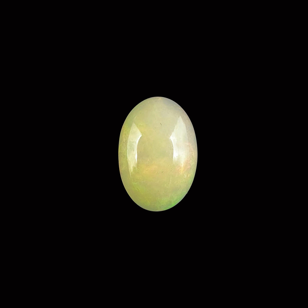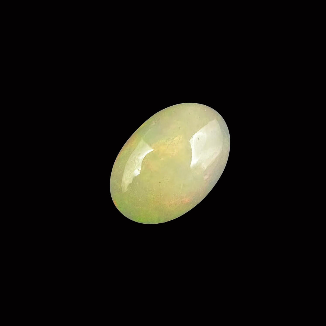 Opal is a captivating 4.8-carat gemstone known for its iridescent play of colors, ranging from vibrant blues and greens to warm reds and yellows. Formed from hydrated silica, opals are cherished for their unique patterns and flashes of light, often resembling a cosmic display.