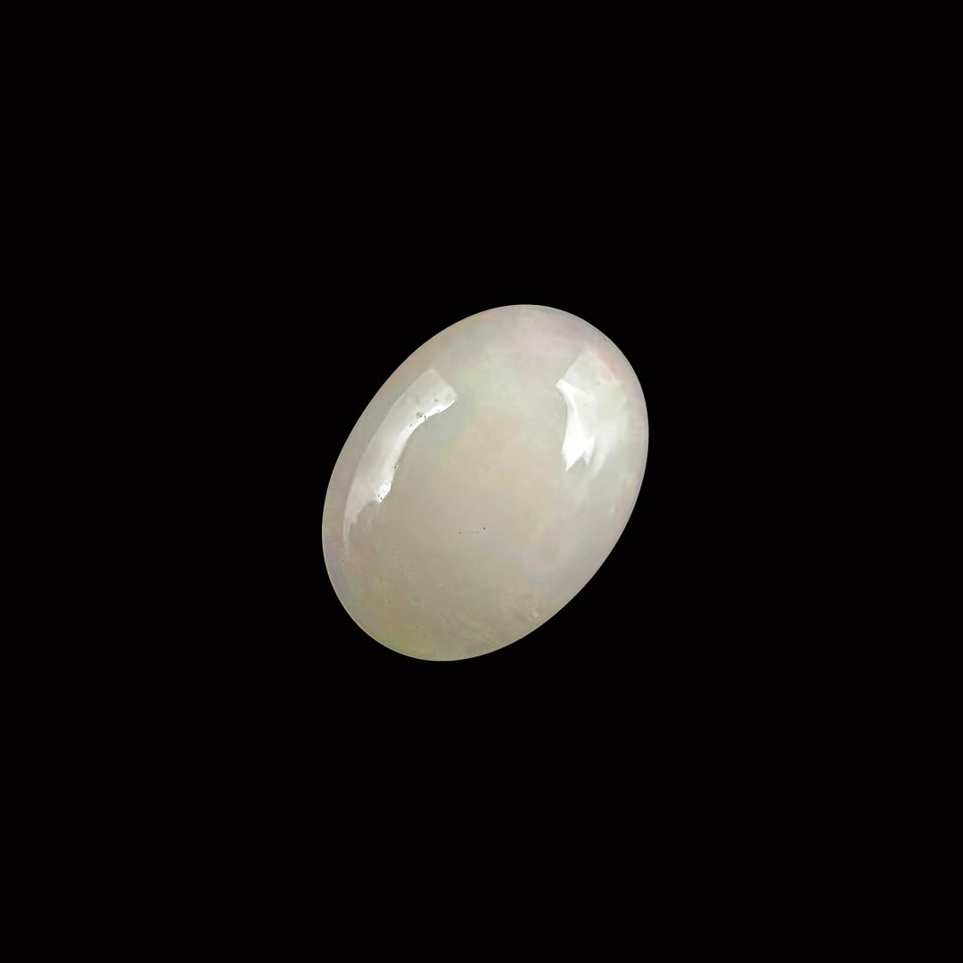 Opal is a captivating 5.1-carat gemstone known for its iridescent play of colors, ranging from vibrant blues and greens to warm reds and yellows. Formed from hydrated silica, opals are cherished for their unique patterns and flashes of light, often resembling a cosmic display.