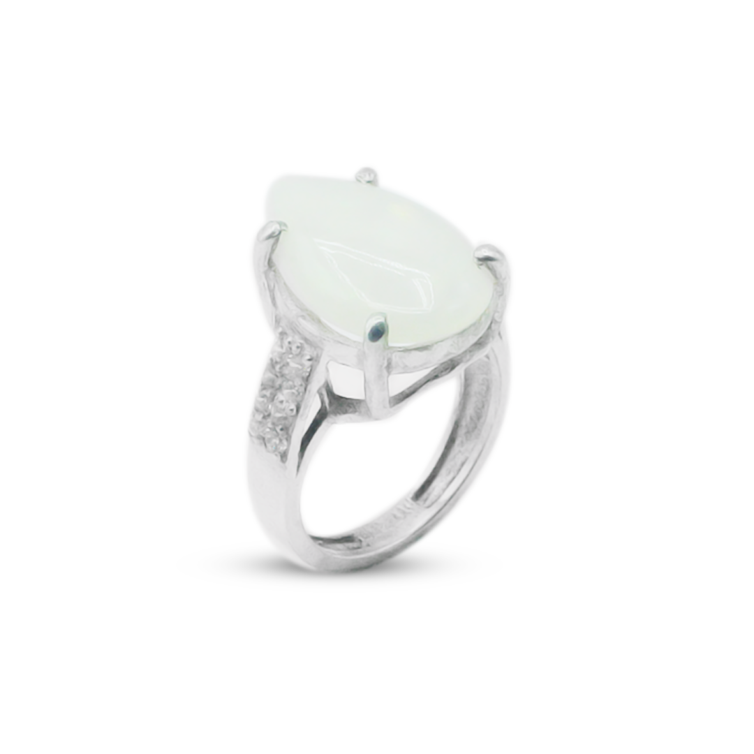 This Opal Women Ring illustrates this sweet design: the opal stone is set under a delicate drop-frame band. This band creates an interesting contrast, drawing attention to the mesmerizing opal and lending an air of elegance to this versatile accessory. Experience sheer elegance with this stunning piece of jewelry.