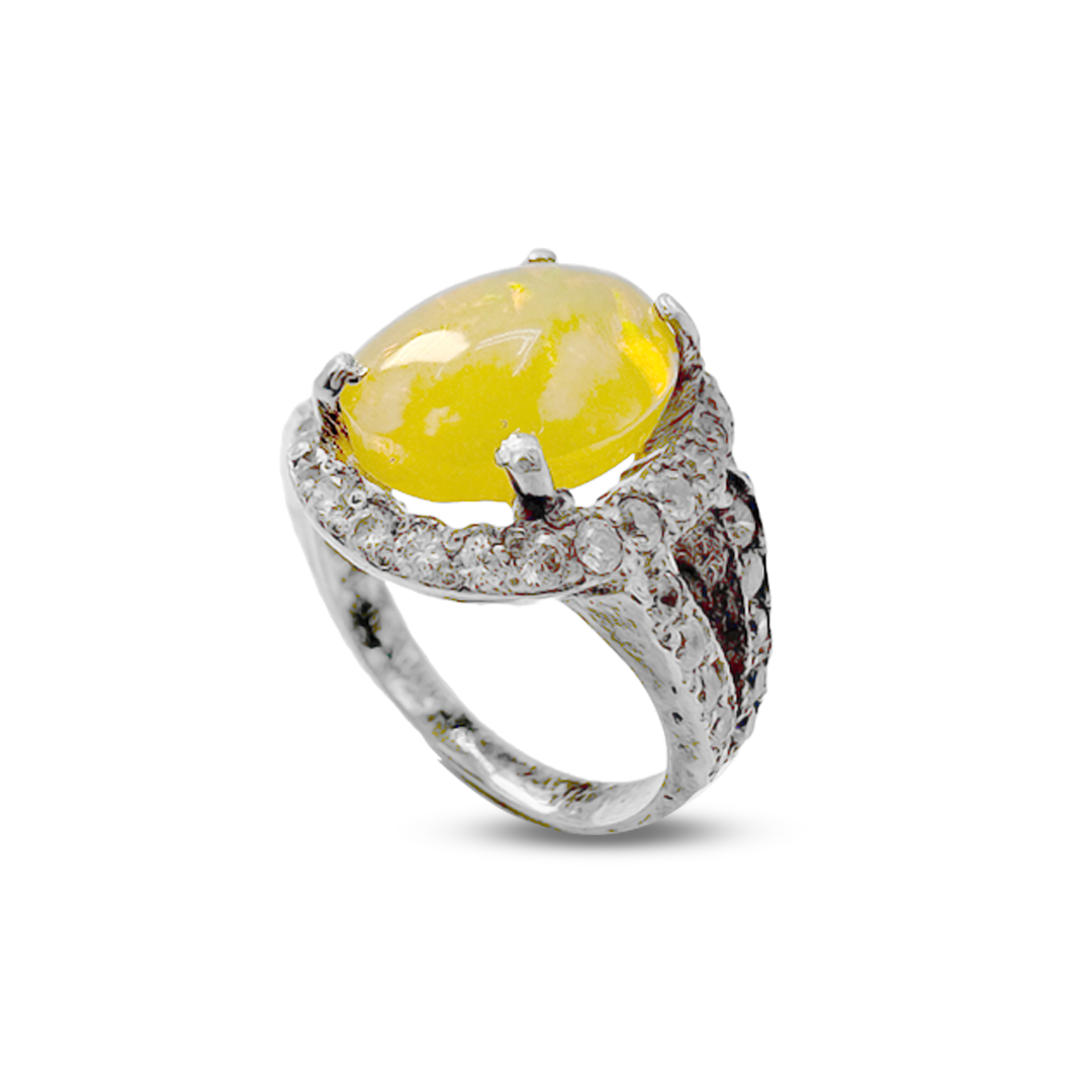 This Opal Women Ring exudes a smoldering design. It has a centered opal stone in the middle of the ring, circled with a halo-like cup and a V-shaped band. That's how this bold, eye-catching Halo Cup and V Band accessory by Jawa Gems will make a statement everywhere you go, having that extra oomph required to add glam and drama to any outfit.