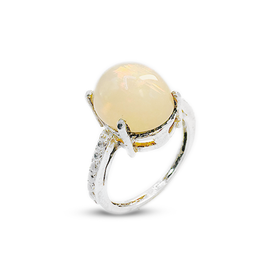 The design of this opal women ring matches a beautiful opal stone with a modern, sleek band detailed with zircon flashing. Classy yet simple in its style, Zircon Band Simple Ring of Jawa Gems lends an air of an understated classic while easily dressing up or down for any style and special occasion.