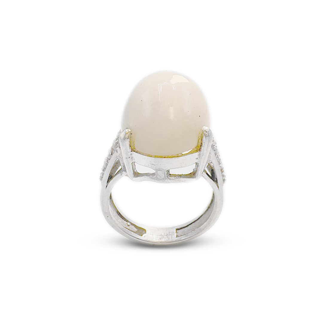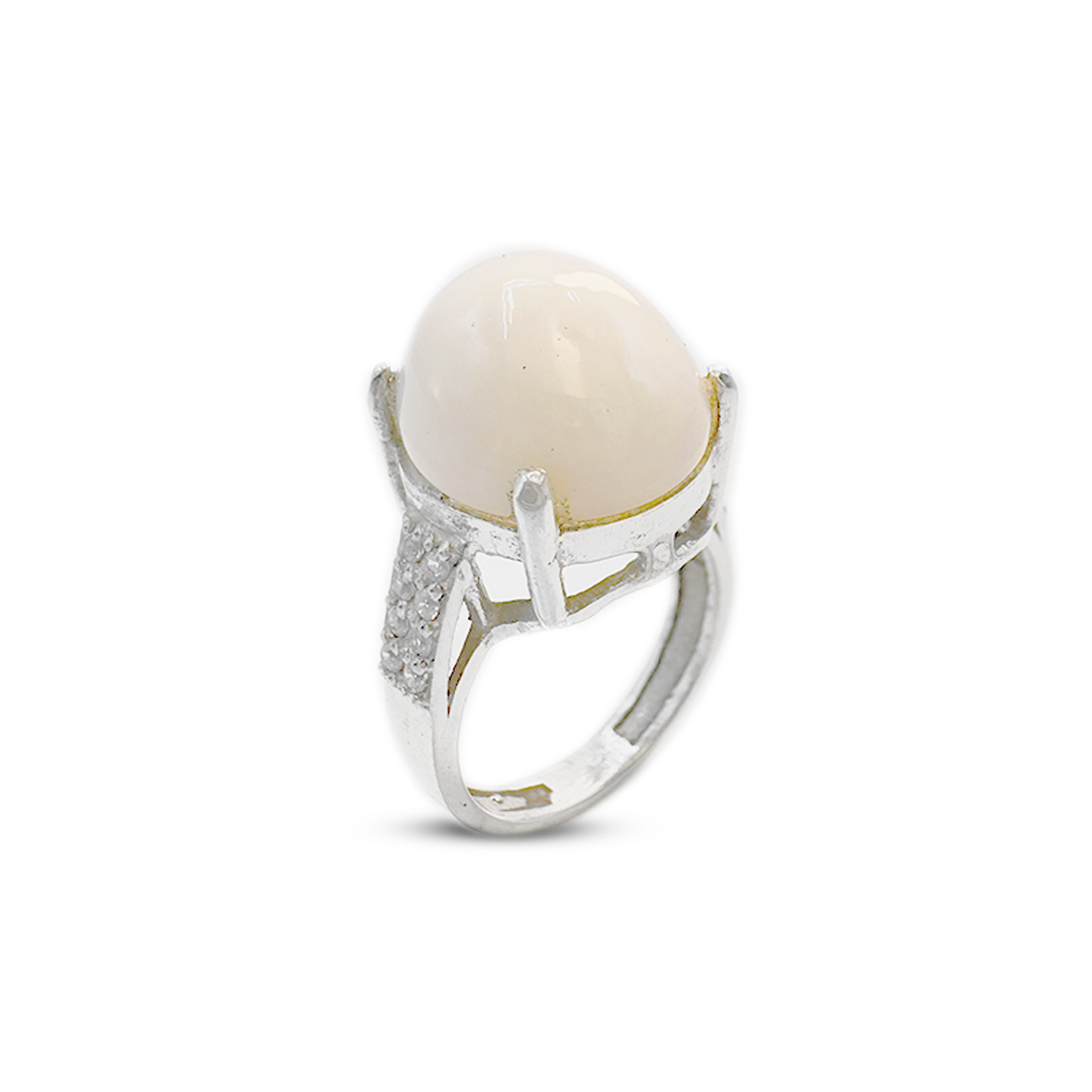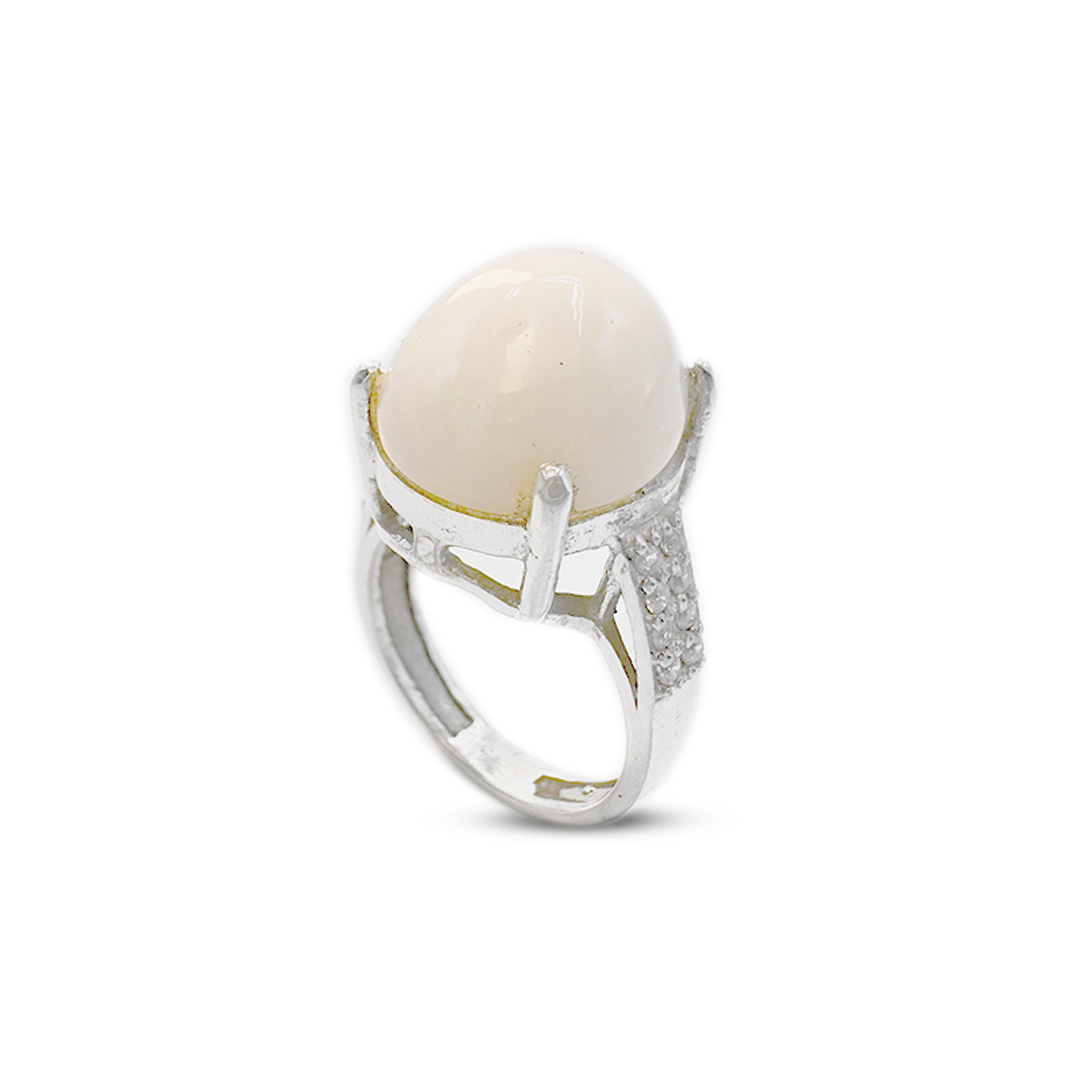 This interesting ladies' ring has an opal stone with a zircon strip band, picking out the invigorating contrast between the two gemstones. It's very shiny and classy, so any style or outfit would look good, making it versatile for the modern woman. Brought to you Opal Women Ring by Jawa Gems, this stunning piece speaks to this renowned jewelry company that specializes in exquisite opal designs.