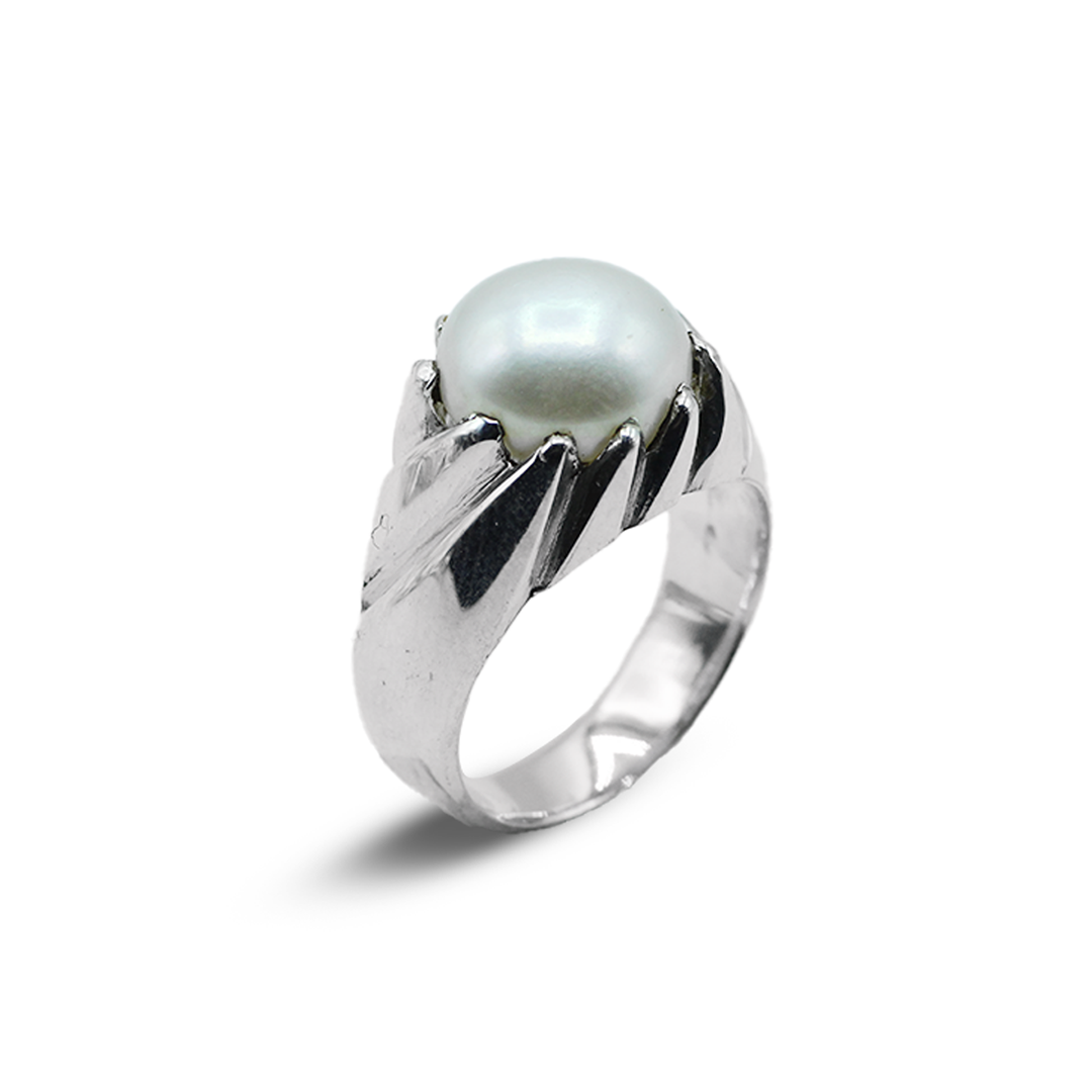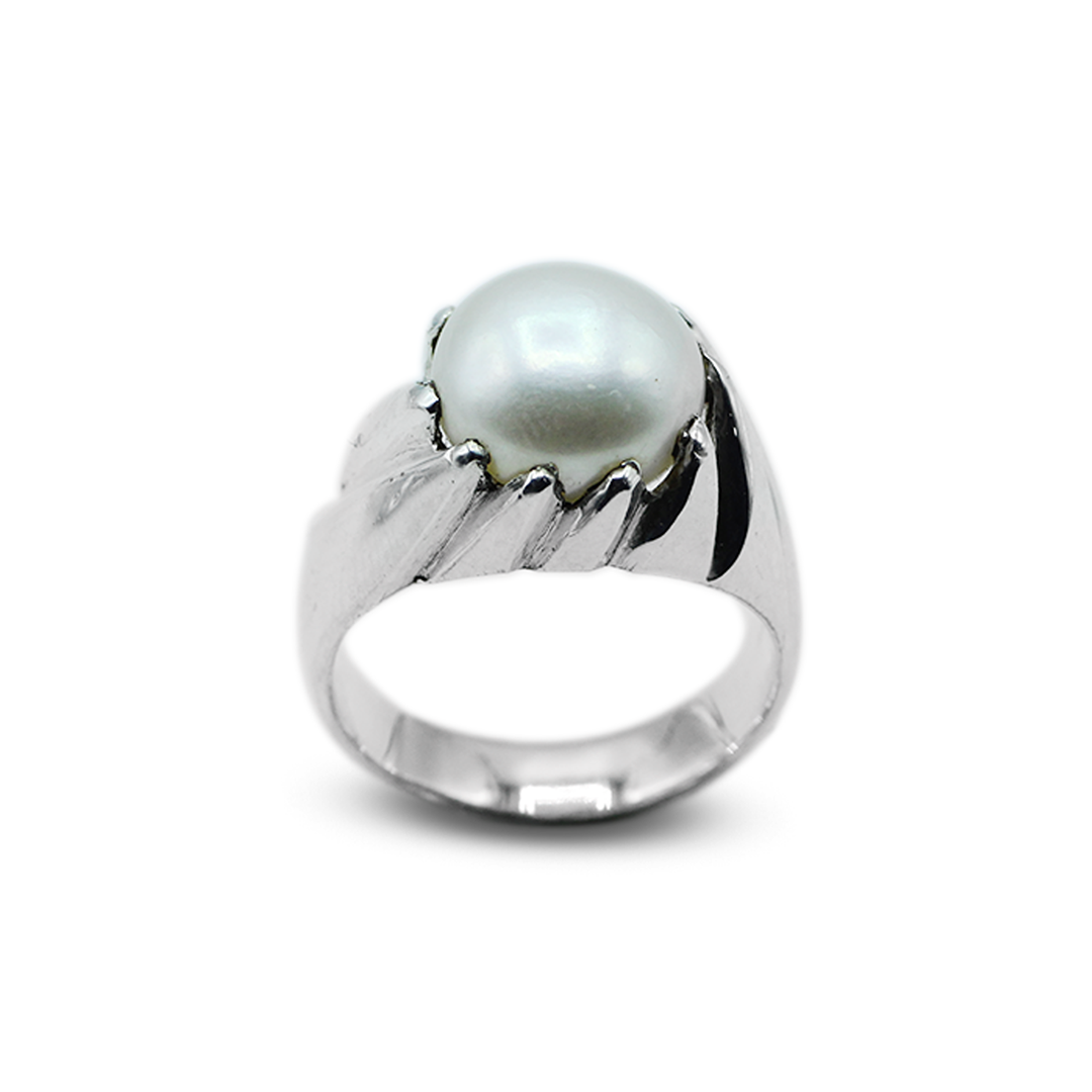 Jawa Gems offers a remarkable Pearl Men Ring that showcases the pearl's inherent beauty through an appealing Wave Across pattern. This beautiful ring has been carefully handmade with attention to detail, has metalwork setting that flows across the finger to create a dynamic, wave-like silhouette.