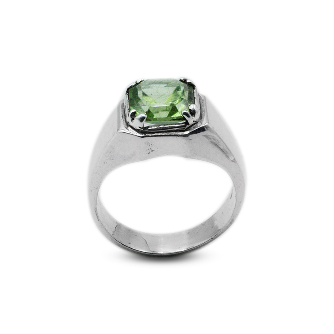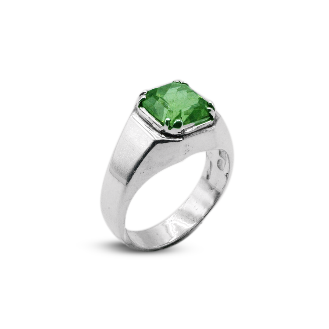 You can make a striking and modern style statement with the Peridot Men Ring by Jawa Gems. With a core peridot stone set within a Wall Band, this eye-catching ring gives the piece depth and personality. There is a remarkable contrast between the polished metal and the vivid green gemstone. This ring is appropriate for every occasion and is perfect for people who value distinctive design.