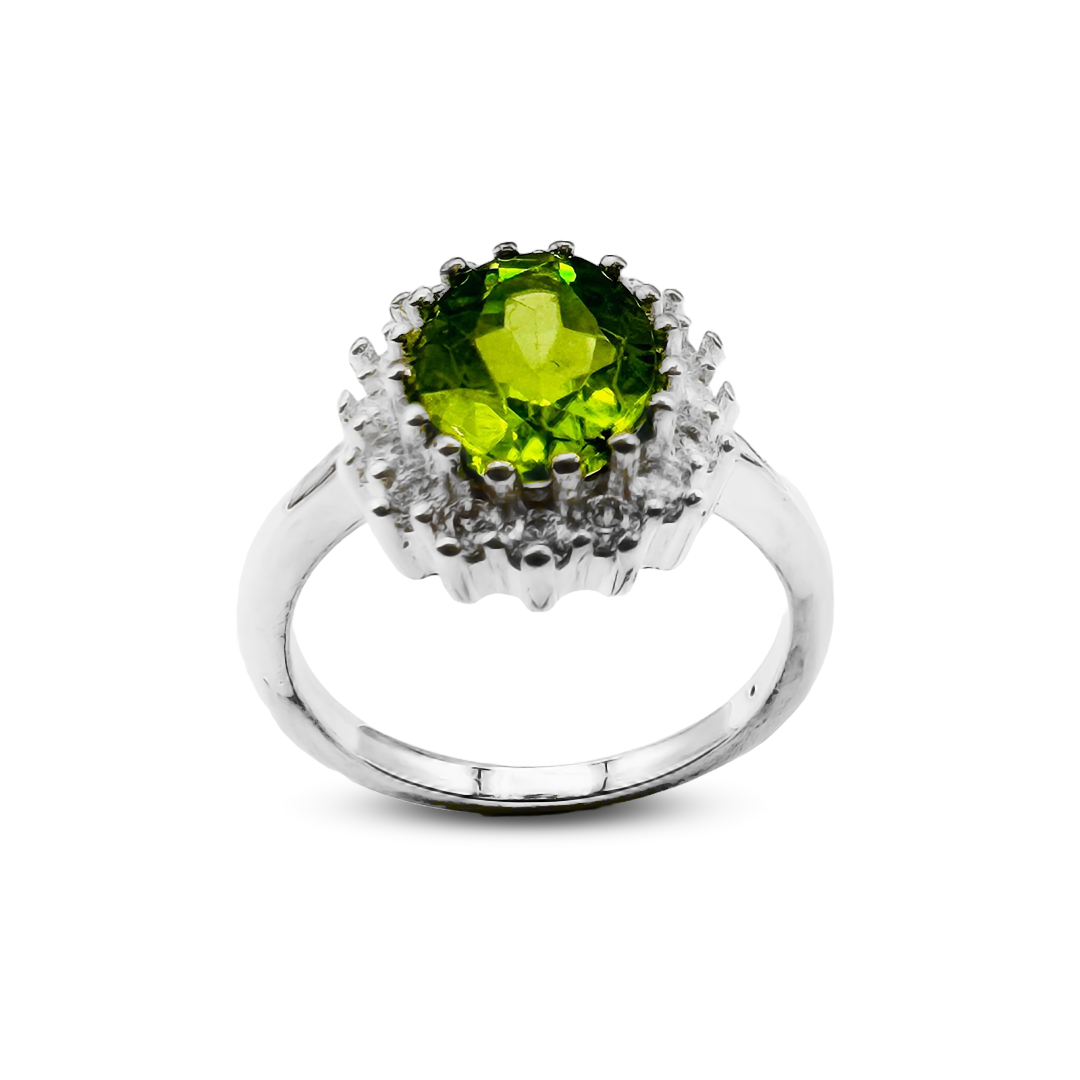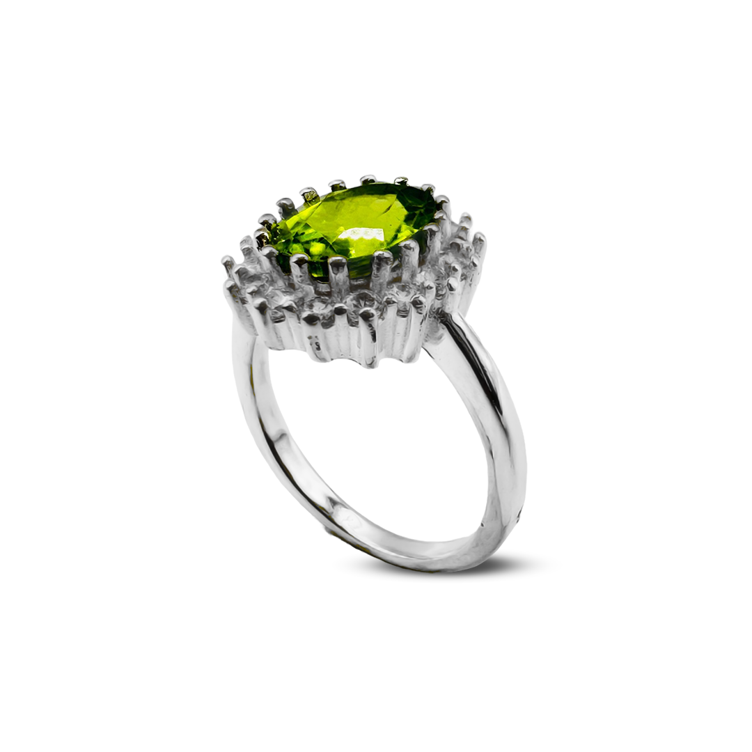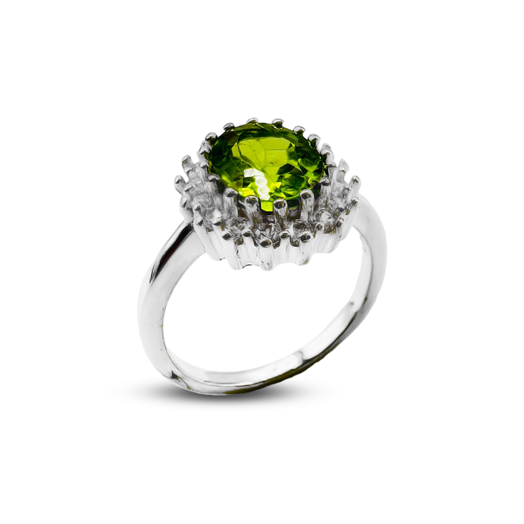 Put a modern touch on a classic design with the Peridot Women Ring by Jawa Gems. This Notch Band design ring has a brilliant peridot stone set inside a distinctively notched band that gives the design depth and dimension. There is a remarkable contrast between the polished metal and the vivid green gemstone. Perfect for both special occasions and daily wear.