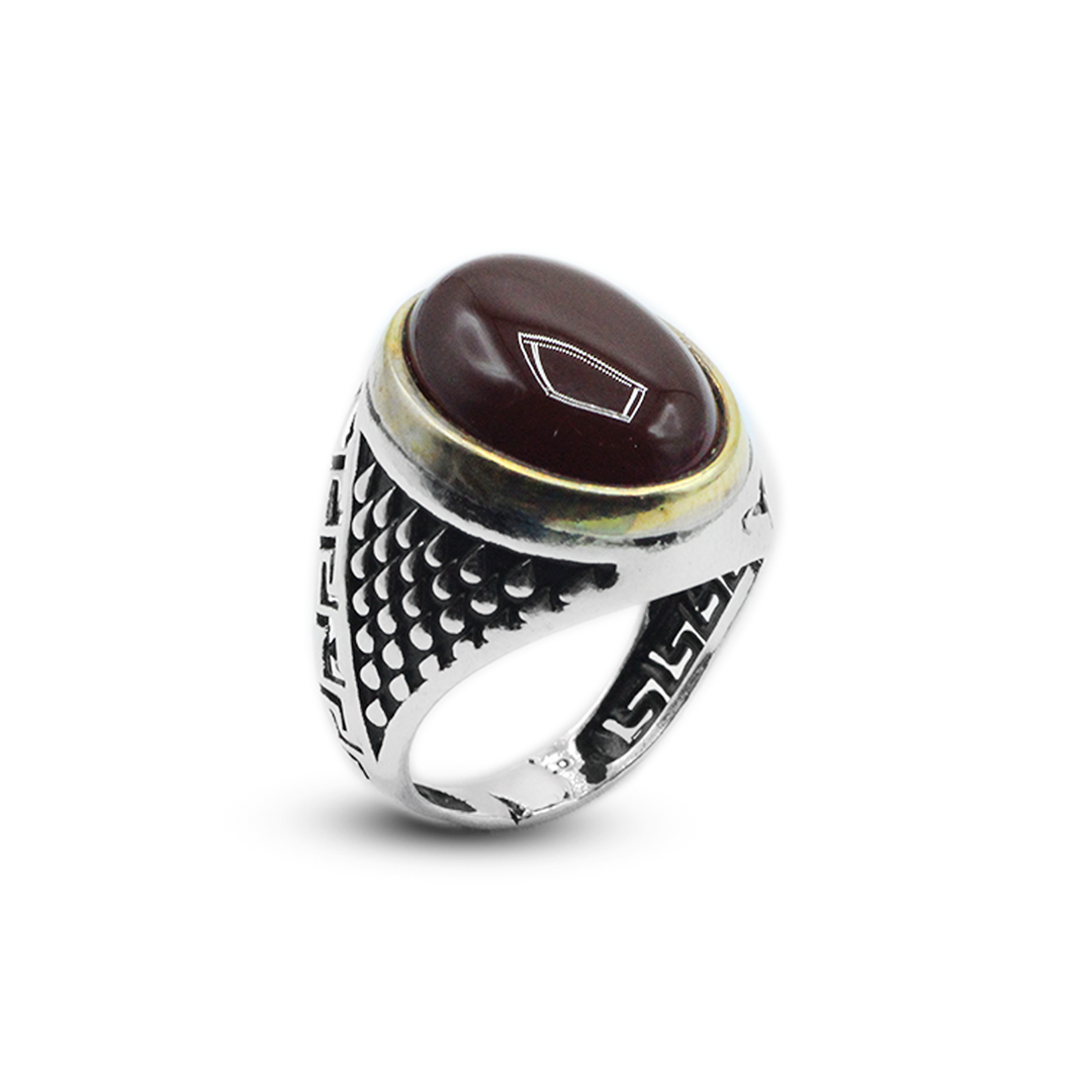 Jawa Gems is offering Red Agate Men Ring. Its beautiful carpet ring design will enhance your look. Warm, earthy tones of the vivid red agate gemstone in this alluring accessory evoke the elaborate, rich designs found in traditional Persian carpets. This ring is an incredible piece of art that may be used as a refined everyday accent or as a bold, statement-making piece.
