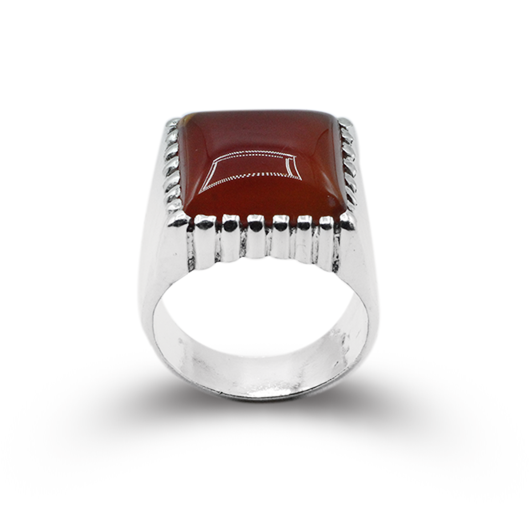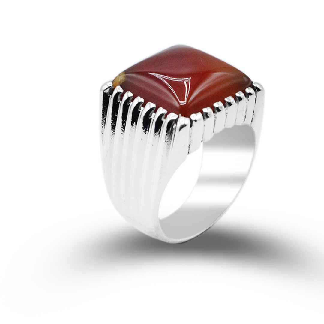 Jawa Gems is presenting the Red Agate Men Ring. Its gorgeous and simple Straight Line Ring design elegantly and simply displays the natural beauty of red agate. The stunning red agate gemstone, set in a cabochon shape, is the focal point of this extraordinary item. Its enthralling patterns capture the eye.