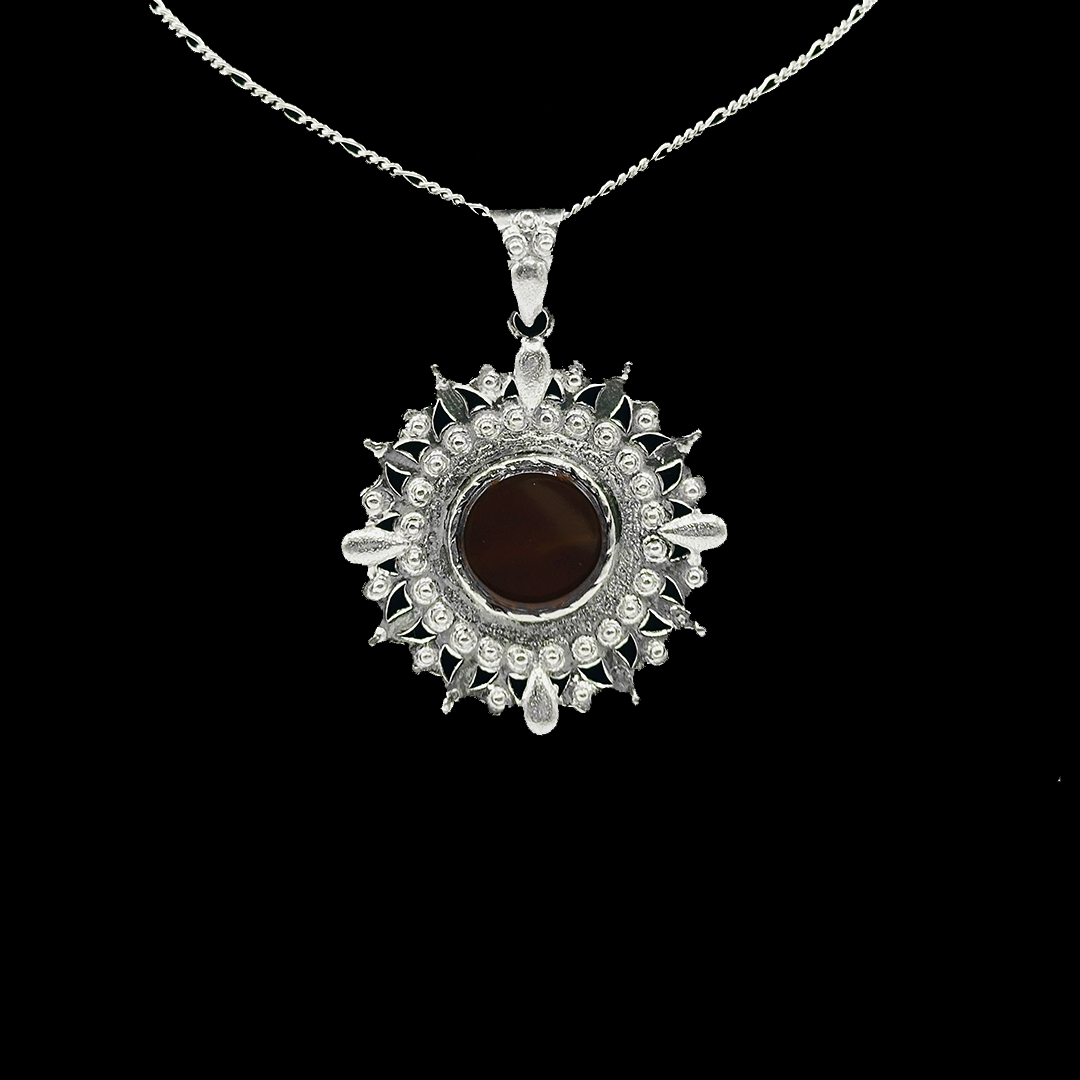 Jawa Gems’ Red Agate Pendant in Sacred Orb design is a captivating piece that combines the energizing power of Red Agate with a sacred, spherical setting. Red Agate is known for its healing, grounding, and protective properties. The orb design represents completeness and balance, making this pendant a powerful symbol of harmony and spiritual growth. Wear it to attract strength, courage, and a deeper connection to your inner self.
