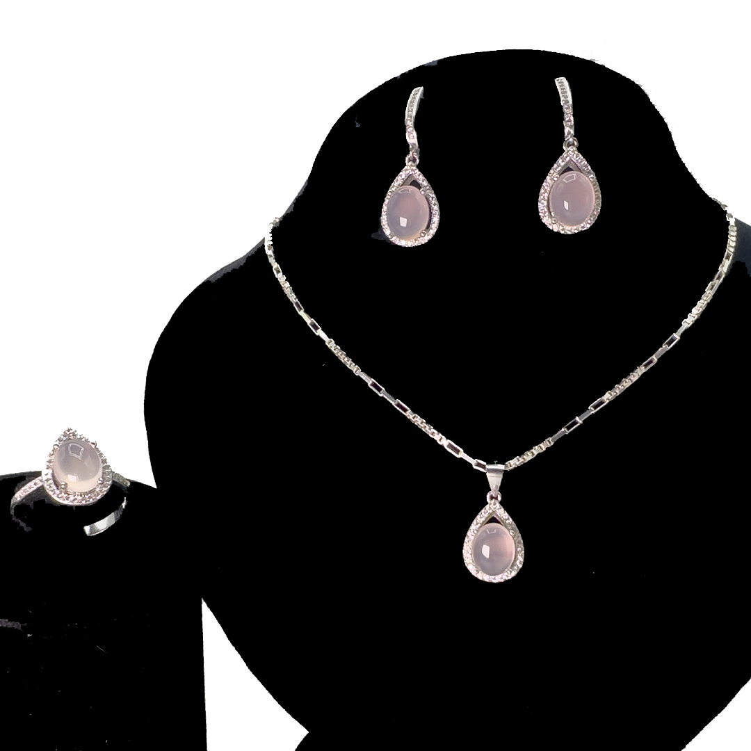 Elevate your jewelry collection with the Rose Quartz Set - Halo Tear. The soft pink hue of rose quartz paired with the halo design creates an aura of sophistication and emotional healing. Perfect for enhancing your inner strength and promoting harmony, this set is a must-have for those who cherish love, balance, and grace.