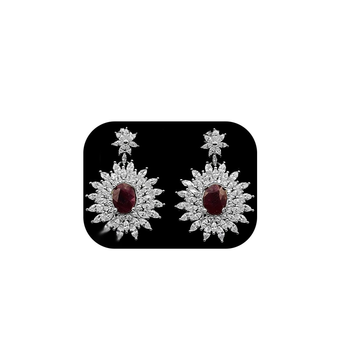 A beautiful combination of ruby and zircon, these floral-inspired earrings represent love, beauty, and strength. The rubies stimulate the heart chakra and promote positive energy, while zircon adds brilliance and clarity to the design.