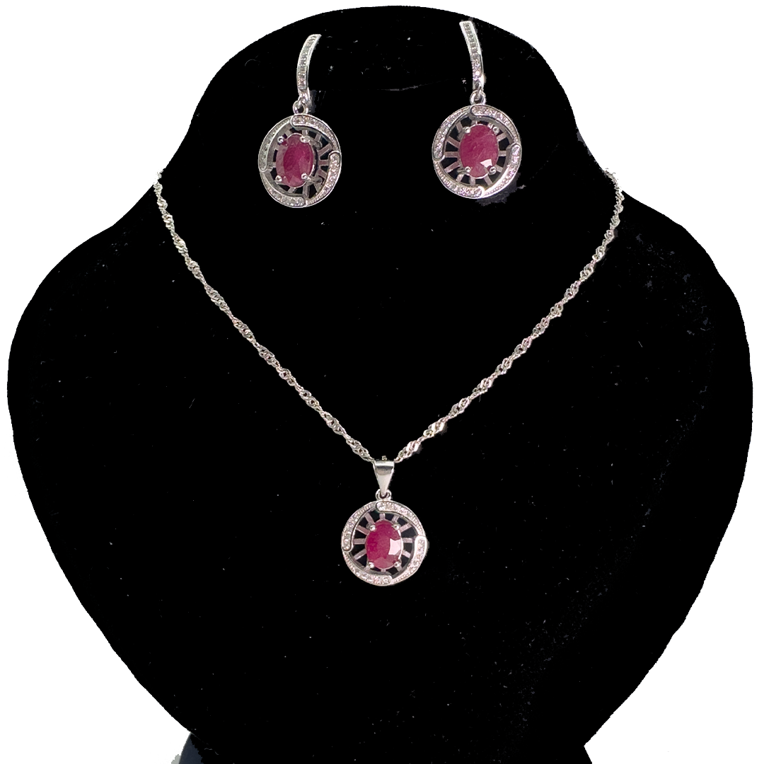 Ruby Pendant Set - Clock Niddle Design