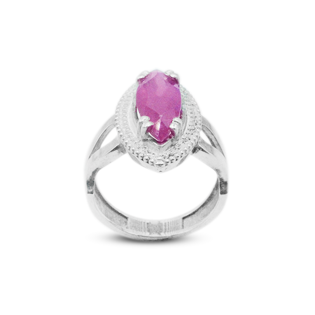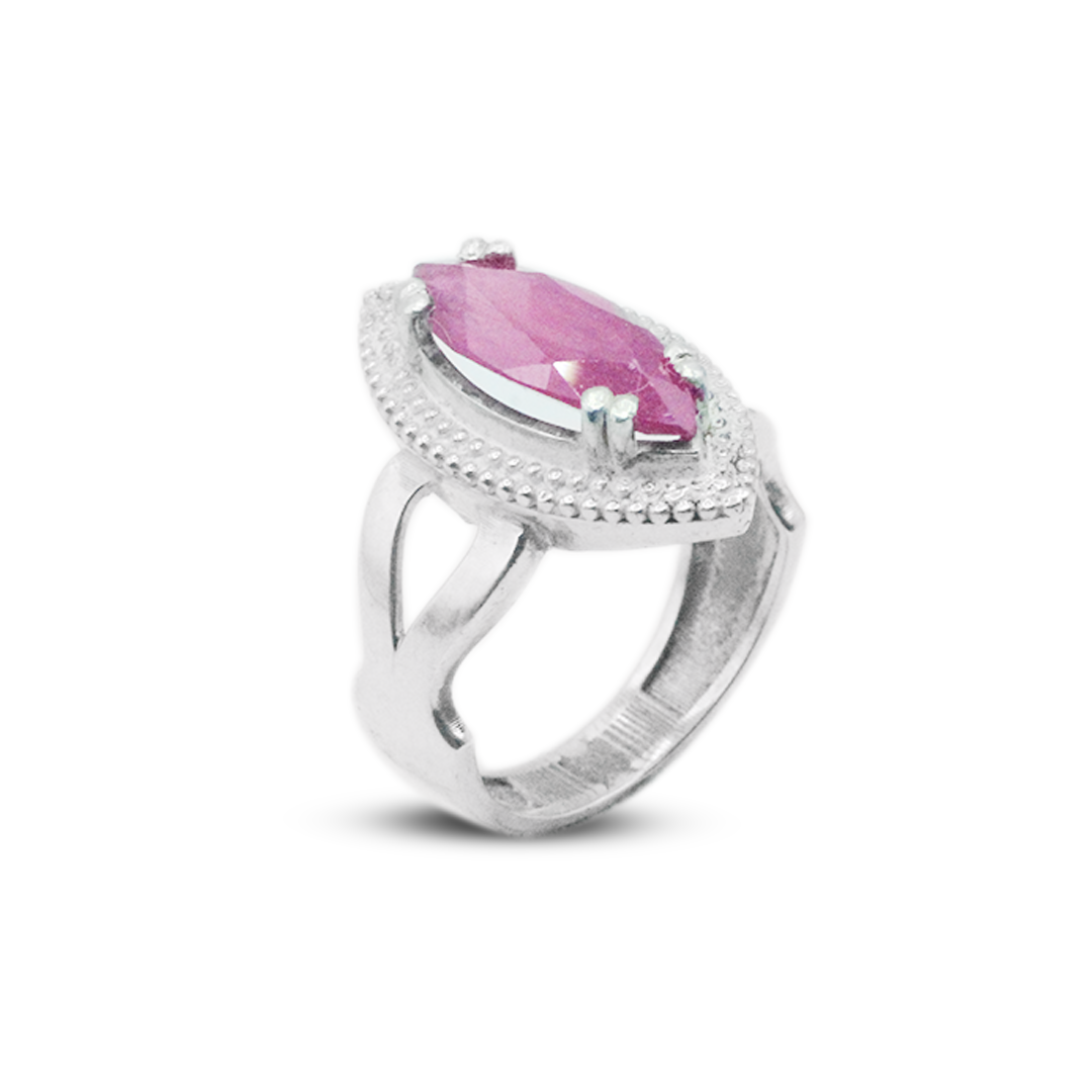 Enjoy the appeal of the Ruby Women Ring by Jawa Gems This gorgeous Double Halo V Band ring has a gorgeous ruby gemstone in the middle, which is surrounded by two brilliant halos of zircon stones. The unique V-shaped form of the band gives it a touch of modern elegance, and the rows of zircons along the band produce an eye-catching visual effect. This Double Halo V band ring, which has been exquisitely crafted, is a real show-stopper that will enhance any outfit.