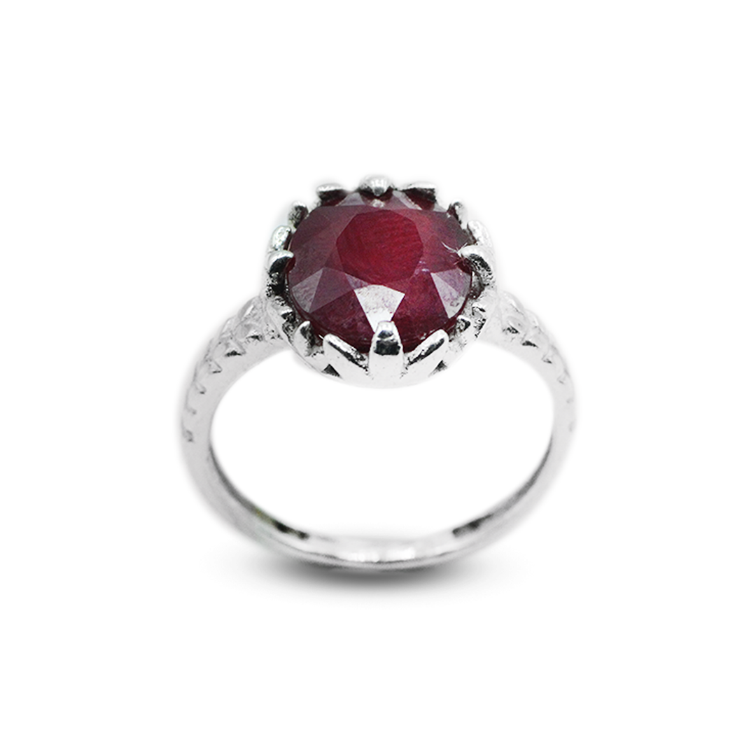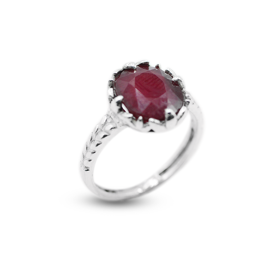 The Jawa Gems Ruby Women Ring - Leaf Corner Design will enhance your look. This gorgeous piece has an amazing ruby gemstone tastefully set in a delicate corner pattern with a leaf pattern. The complex, sculptural band easily combines traditional and modern elements to create a captivating, nature-inspired look. This ring was made with extraordinary attention, making it a true work of art.