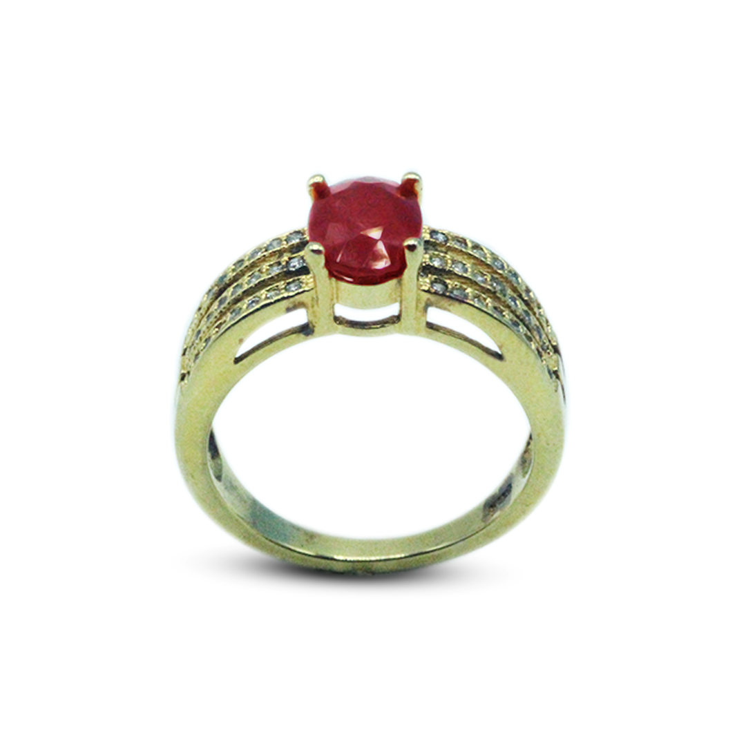 The stunning Jawa Gems Ruby Women Ring – Single Zircon Band is an exquisite piece that skilfully combines traditional grace with a dash of contemporary glitz. This magnificent ring has a gorgeous ruby gemstone set in a single row of glittering zircon stones that create an eye-catching, captivating effect.