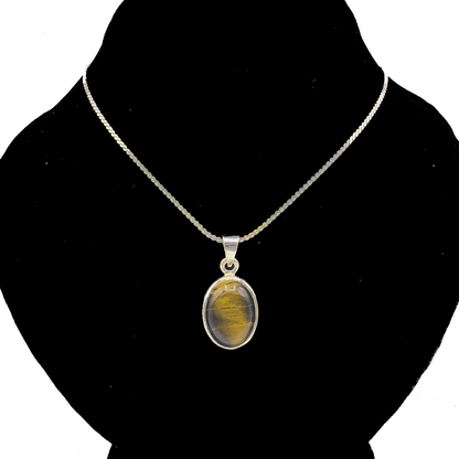 The Tiger Eye Pendant with Shine Ovalatte design radiates elegance and inner strength. Tiger Eye is known for its grounding and protective properties, enhancing focus, self-esteem, and clarity. The ovalatte design symbolizes wholeness and balance, making it an ideal choice for those seeking peace and emotional stability. This pendant serves as a constant reminder of your personal power, helping to guide you toward success while warding off negative energies and encouraging self-assurance.