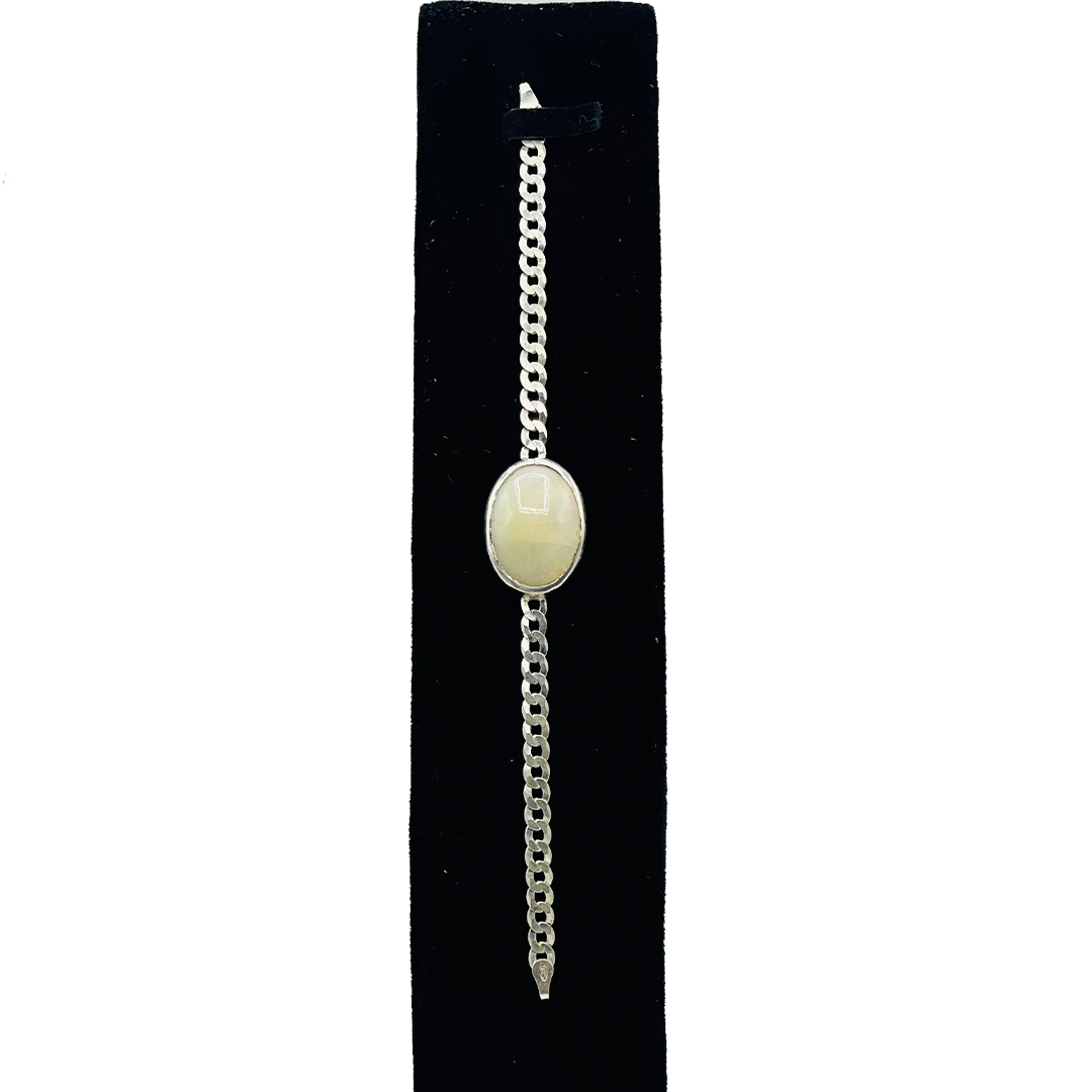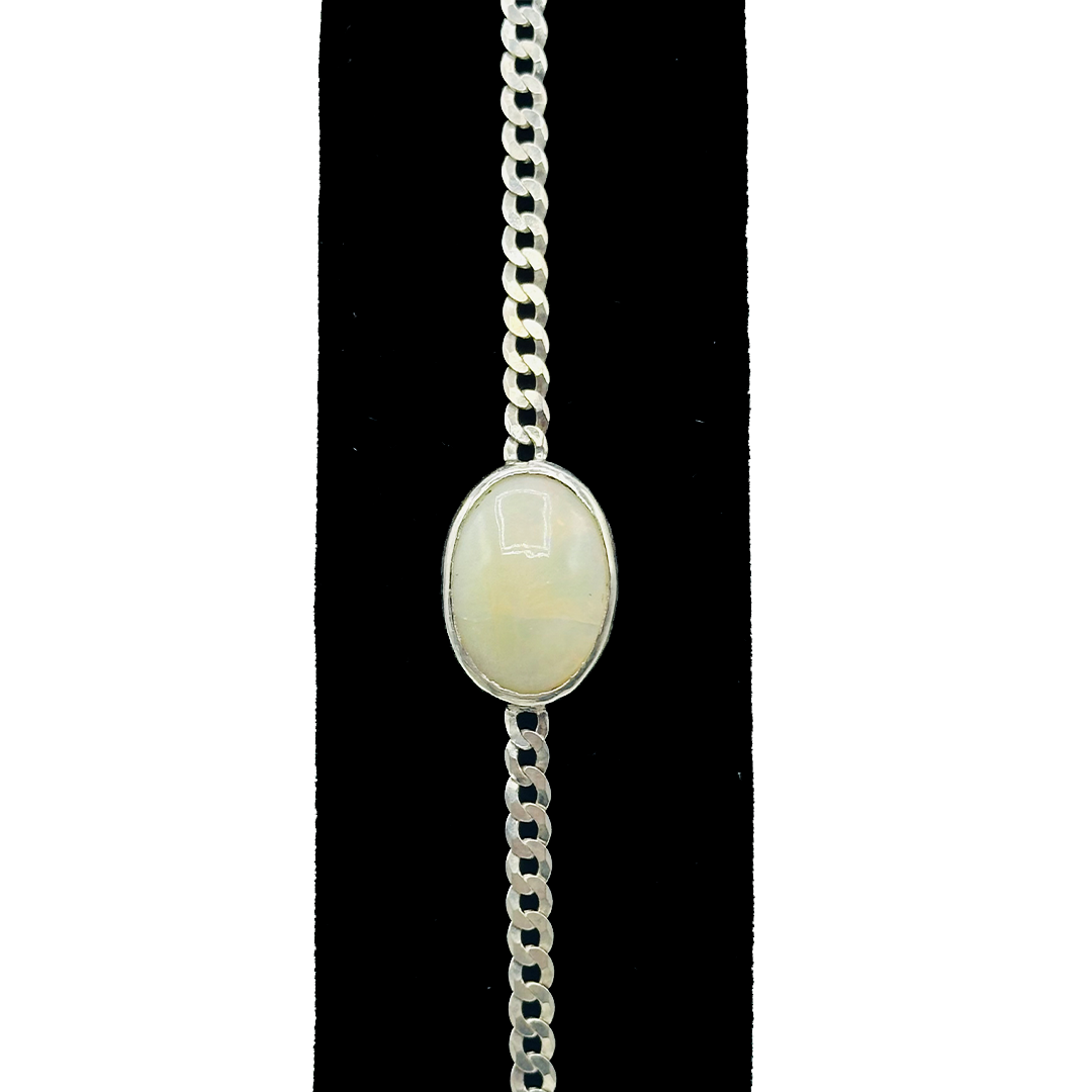 The White Opal Bracelet with Cross Chain design is a symbol of spiritual connection, healing, and personal growth. White opals are known for their emotional balance and healing properties, promoting clarity, creativity, and inner peace. The cross chain adds a meaningful touch of protection and transformation. This bracelet is ideal for those seeking a harmonious blend of beauty, healing energy, and spiritual growth, offering both style and emotional well-being.