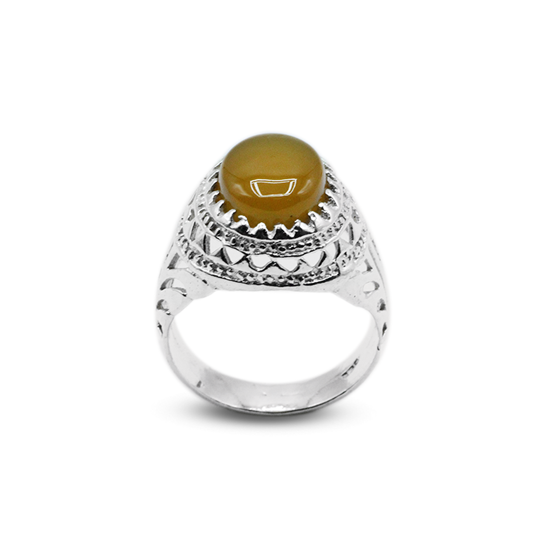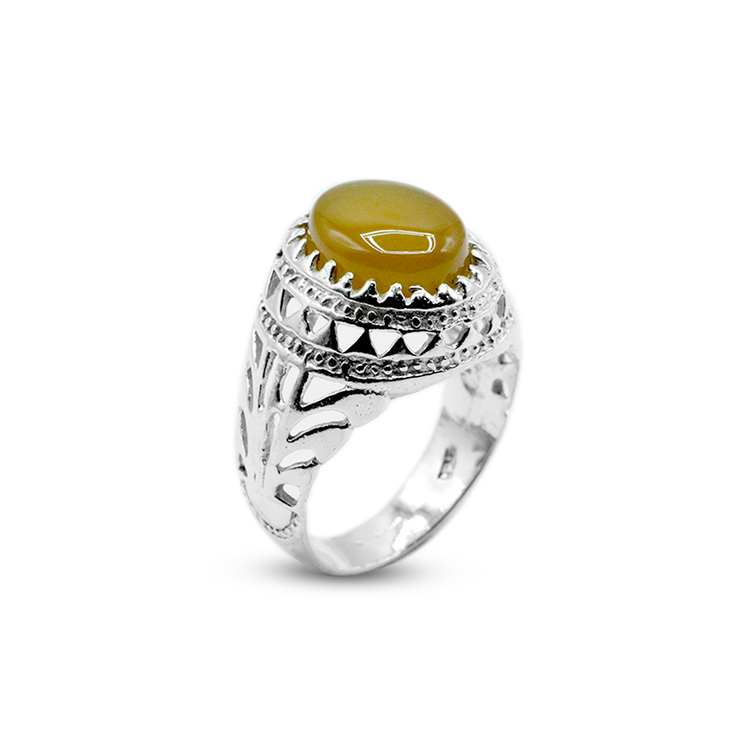 Yamani Agate Men Ring by Jawa Gems is one such piece that draws from Iran's wisdom-laden culture. This ring has a highly intricate, traditionally inspired design that displays intrinsic grace for the yellow agate stone, making this Irani Traditional Design accessory unique and class apart. This is the ideal ring for men to adore.