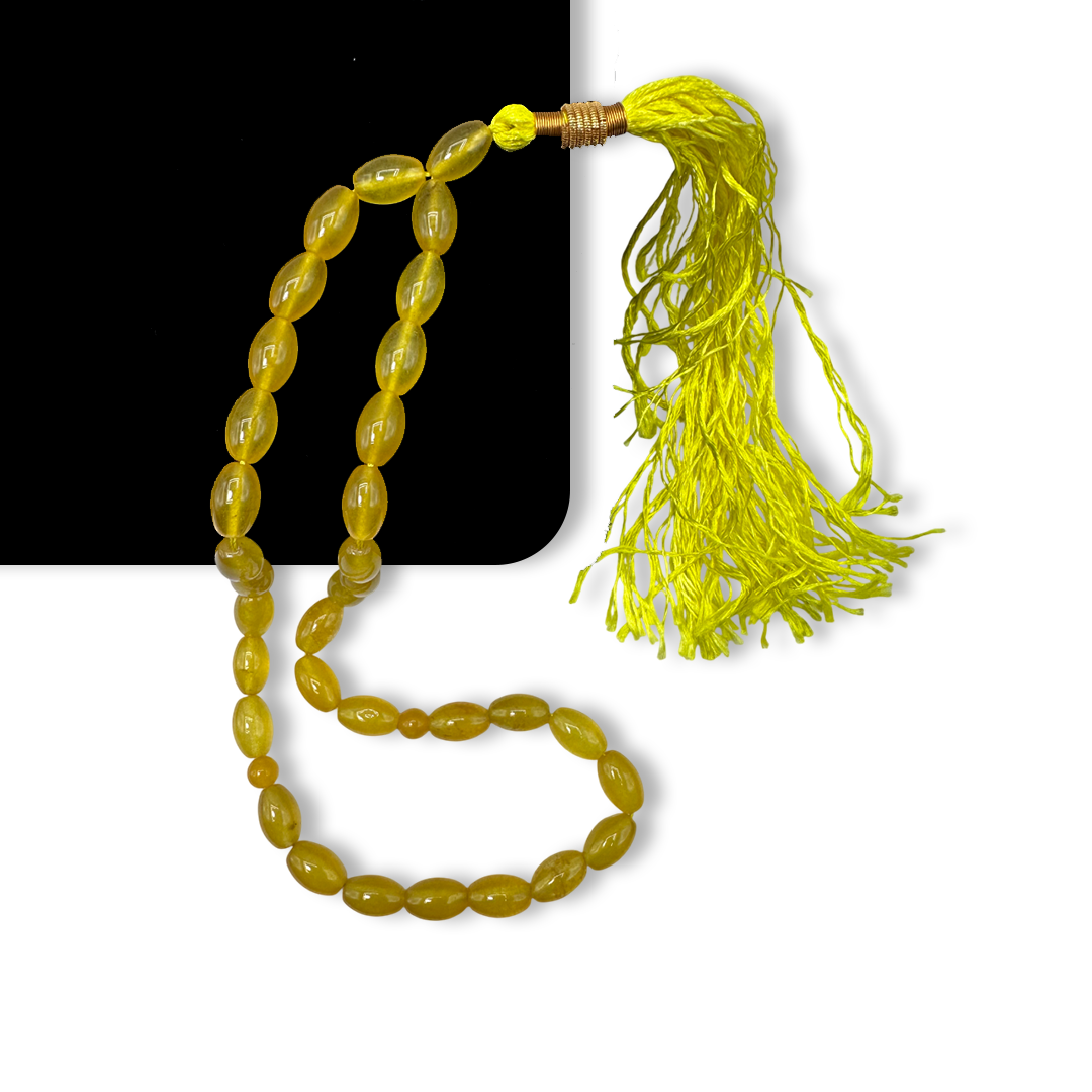 Made with 6mm Yellow Agate beads, this Tasbih promotes joy, creativity, and energy. It’s perfect for enhancing optimism and clarity in your spiritual journey.