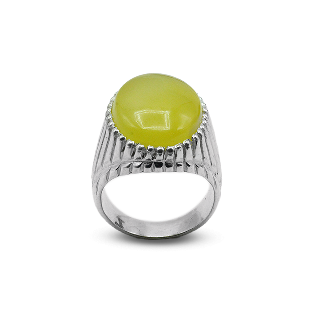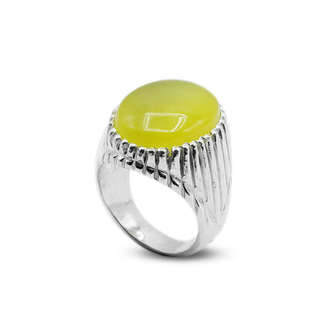 This sterling silver and Yellow Agate Men Ring by Jawa Gems is striking, with its sleek wires crossing over the center stone. This modern ring will fit any man who wants to make his statement. This noticeable ring with Wire Across is representative of its brand's ingenuity with jewelry design; it's a must-have for the modern man.