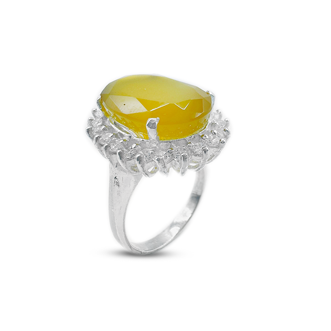 The Yellow Agate Women Ring by Jawa Gems is a beautiful piece that infuses the color of yellow agate, given by Mother Nature, with the all-loving classic Italian Halo design. This ring is a testament to the everlasting elegance of the brand's jewelry. The top-quality women's ring should be your ideal choice to invest in.