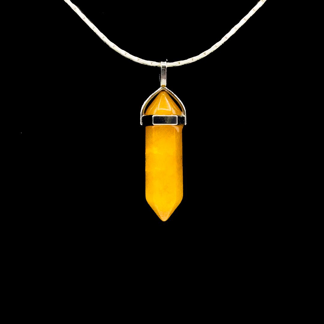 This Yellow Jade Pendant with a silver top design features a smooth, vibrant yellow jade stone accented by a sleek silver cap. The cheerful yellow hue combined with the minimalist silver setting makes it a perfect piece for adding a pop of color and elegance to any outfit.