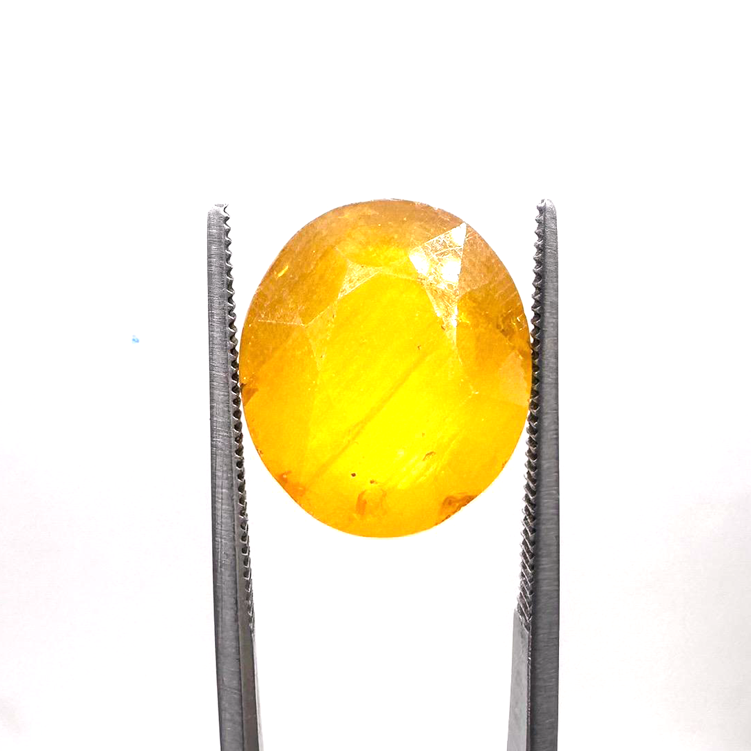 The top-notch collection of 11.9-carat Yellow Sapphires reflects a stunning yellow color associated with wealth and enlightenment. This precious gemstone is natural and was selected based on its compound's purity and bright red hue, which symbolizes prosperity, fortune, and luck. All prestige gemstones are lab-tested and certified, offering customers a true sense of reliability.