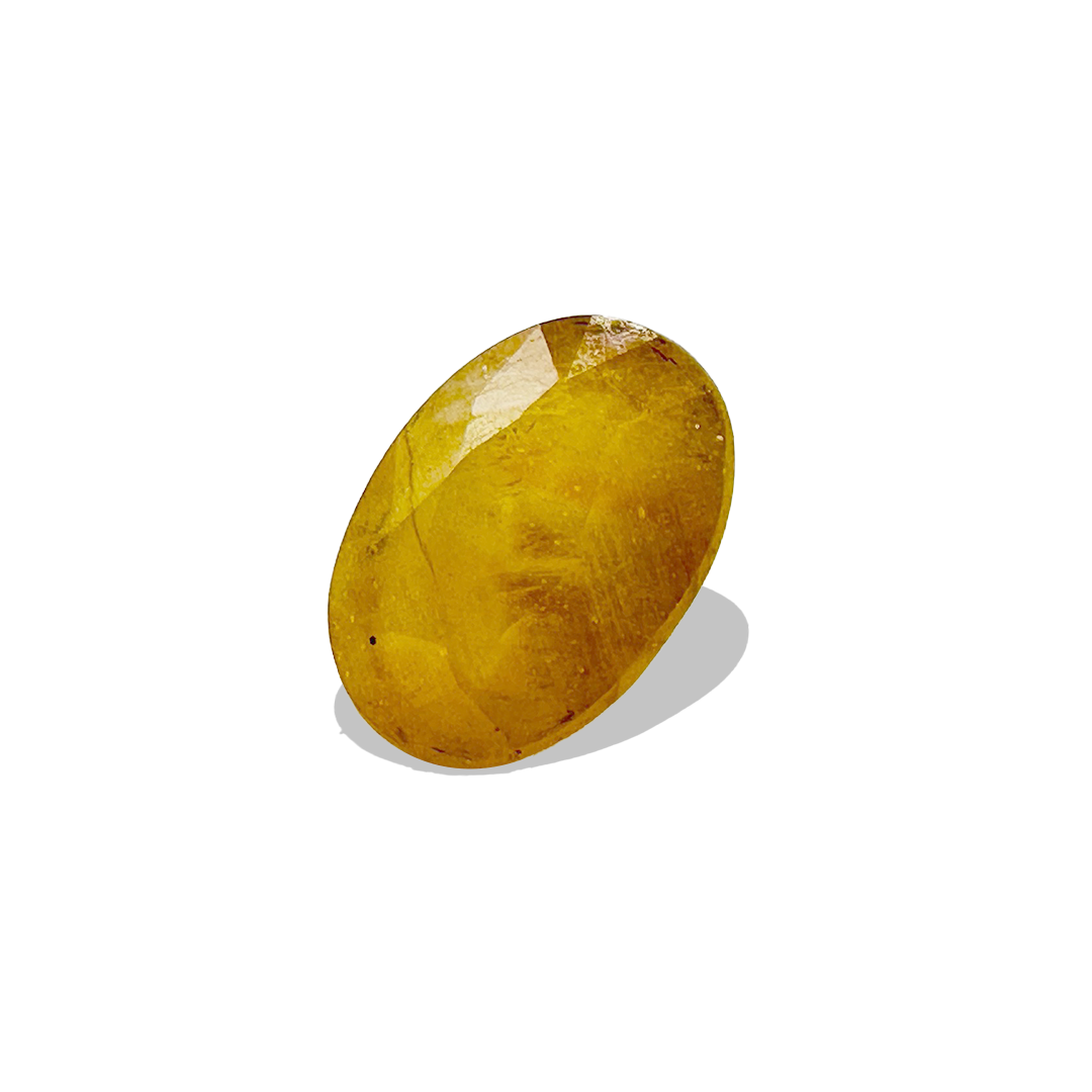 This 4.55-carat Yellow Sapphire is a stunning natural gemstone, certified for authenticity. Known for enhancing clarity and intellect, it promotes wisdom and prosperity. Lab-certified and naturally sourced, this vibrant yellow sapphire brings positive energy, mental focus, and success to its wearer, making it a powerful talisman for confidence and clarity.