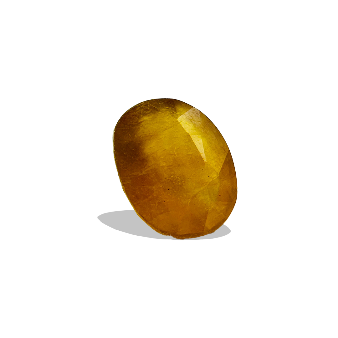 This 8.6-carat Yellow Sapphire is a stunning natural gemstone, certified for authenticity. Known for enhancing clarity and intellect, it promotes wisdom and prosperity. Lab-certified and naturally sourced, this vibrant yellow sapphire brings positive energy, mental focus, and success to its wearer, making it a powerful talisman for confidence and clarity.