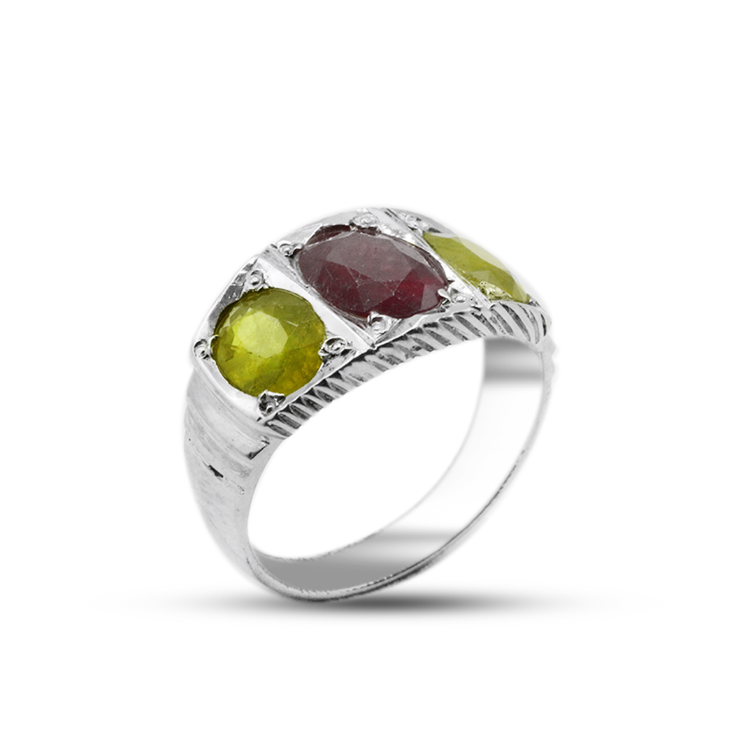 The Yellow Sapphire Gents Ring 3 Stone Ring Design from Jawa Gems is an example of style and class. This ring has three beautiful yellow diamonds set in a beautiful design. Its classic style makes any outfit look better. This piece of art shows confidence and style. It's perfect for the modern man who values great work and a stylish look.