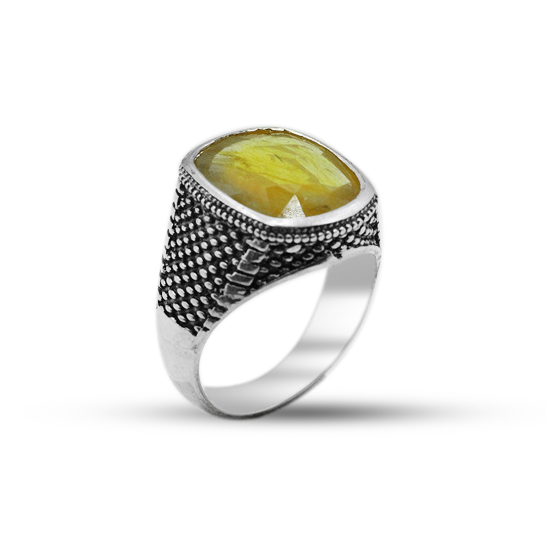 You can get Yellow Sapphire Gents Ring Irani Design at Jawa Gems, which is amazing in providing a beautiful combination of old and new styles. This ring adds a touch of class to any outfit due to its beautiful design and bright yellow gem. It's an expressive piece that carries traditional appeal and luxury, making it great for the modern man who values cultural history and outstanding style.