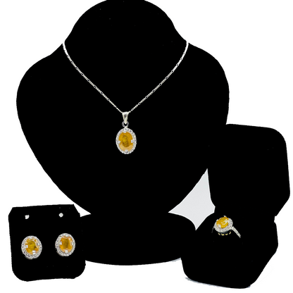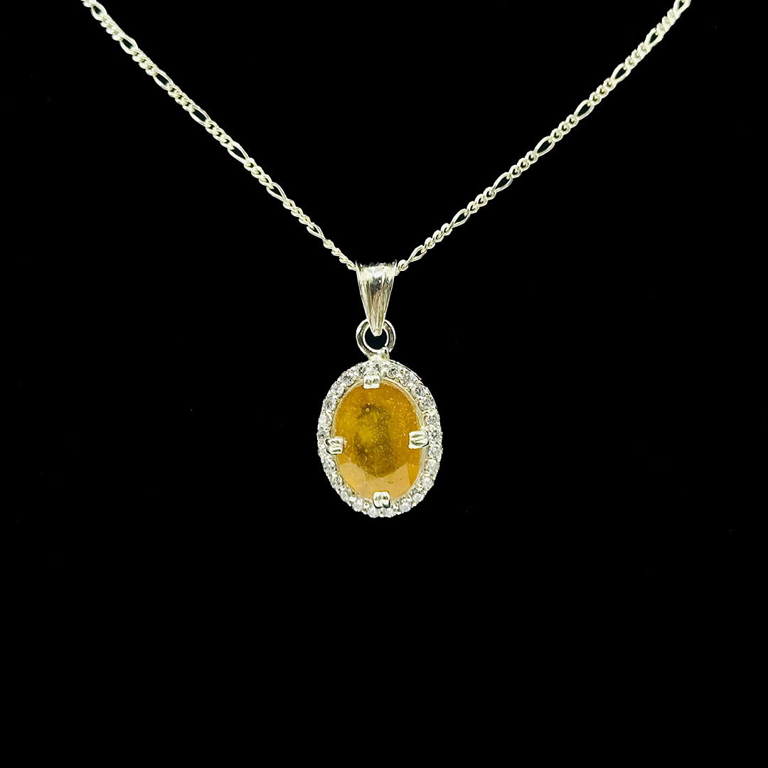 The Yellow Sapphire Pendant Set in Class Outlay design by Jawa Gems exudes luxury and sophistication. Yellow Sapphire is believed to bring wisdom, prosperity, and mental clarity, making it a powerful gemstone for personal growth. The Class Outlay design enhances the gemstone’s radiant hue, offering a chic and refined look that is perfect for both formal and casual occasions. This set combines beauty with spiritual benefits, making it a must-have for those seeking elegance and success.