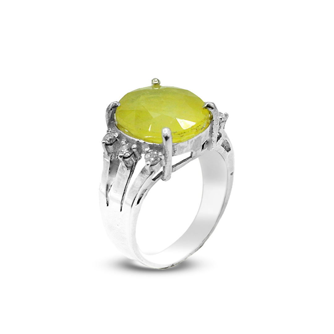 The Yellow Sapphire Ladies Rings Multi Layers Design by Jawa Gems is an amazing example of how beautifully jewelry can be made. This ring looks beautiful with any outfit because it has a bright yellow sapphire set in a lot of different types of complex designs. It's a beautiful piece that shines out and gets attention to itself. It's perfect for a stylish woman who values style.