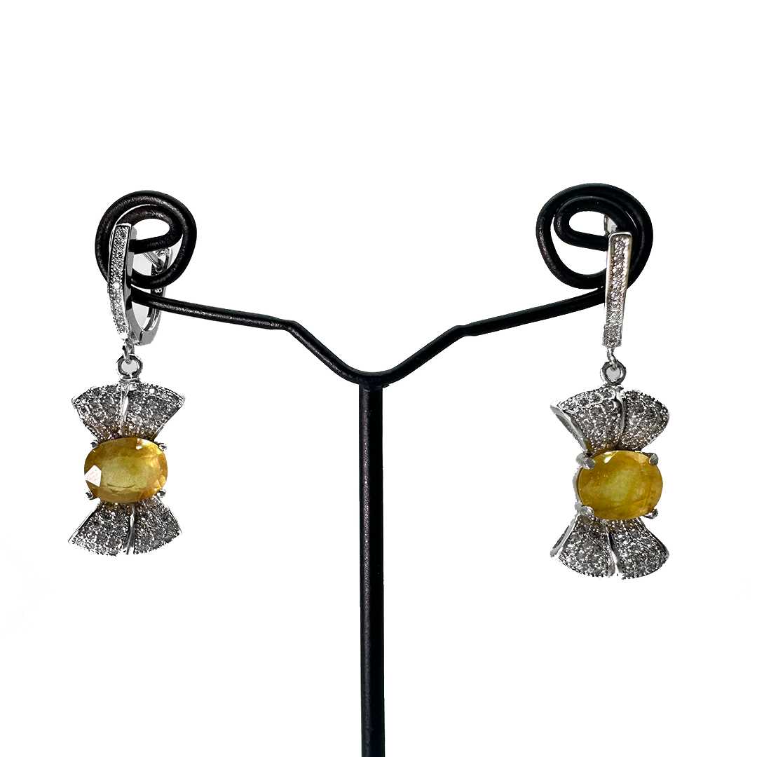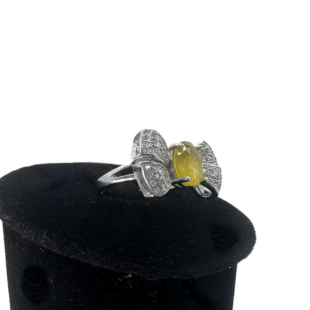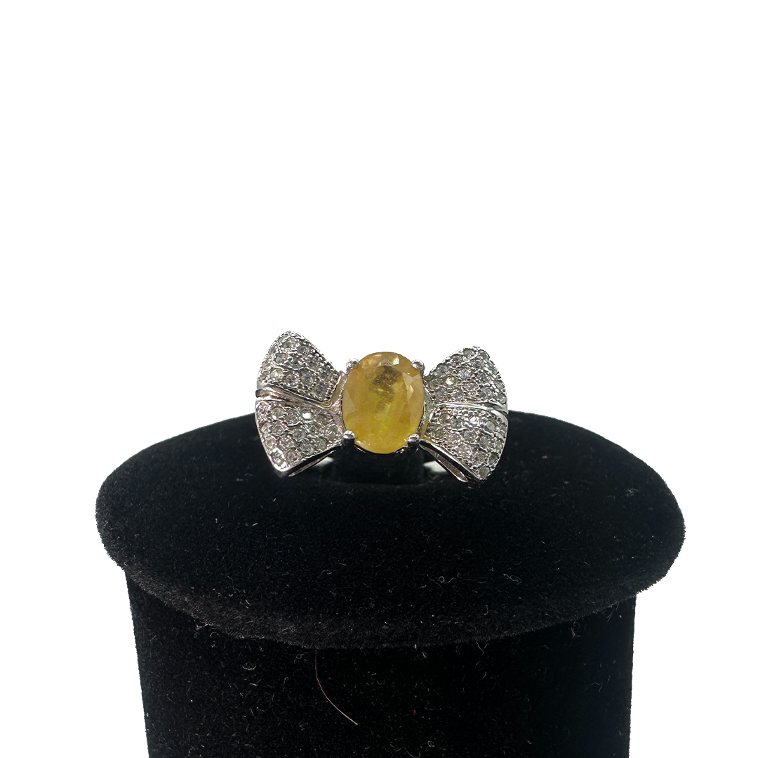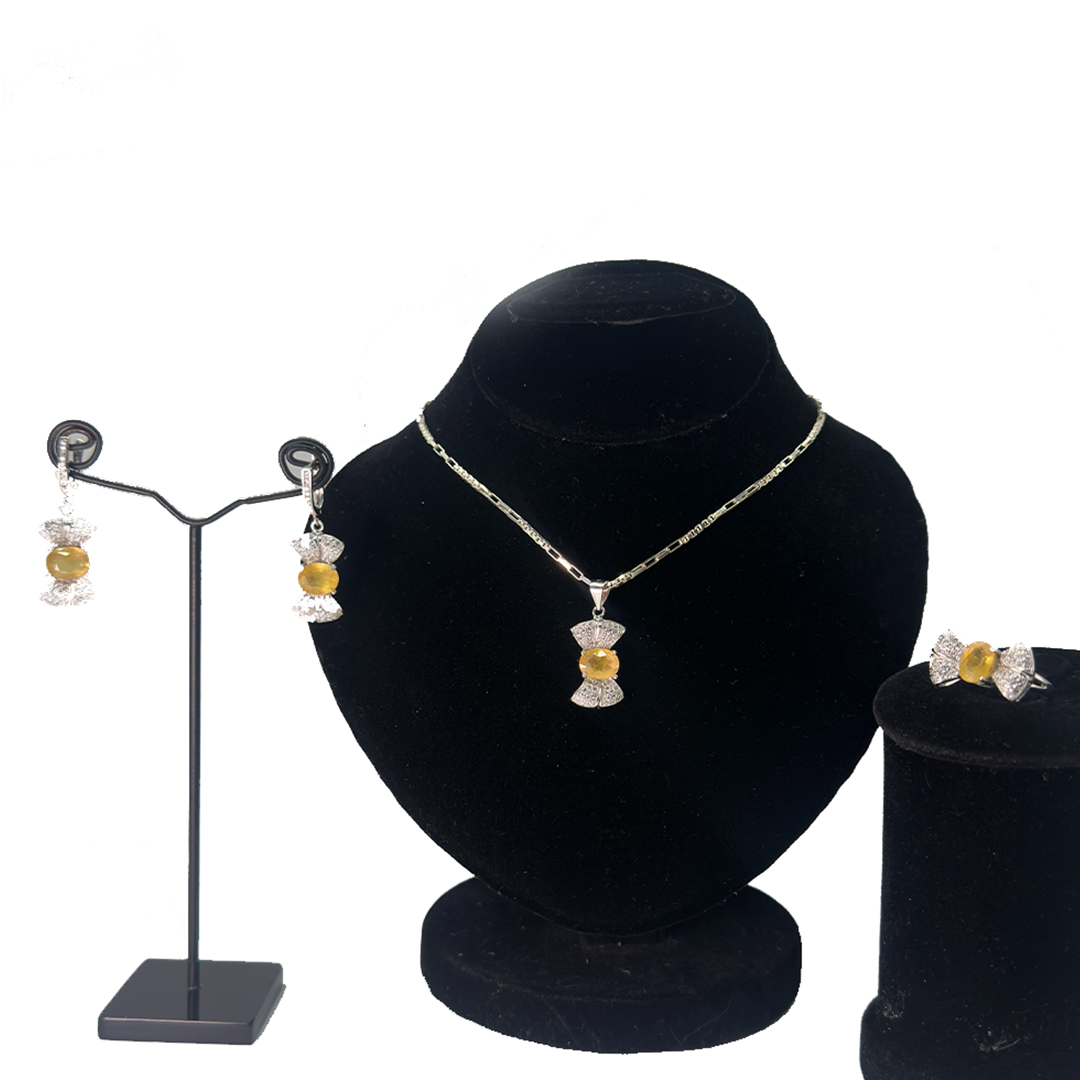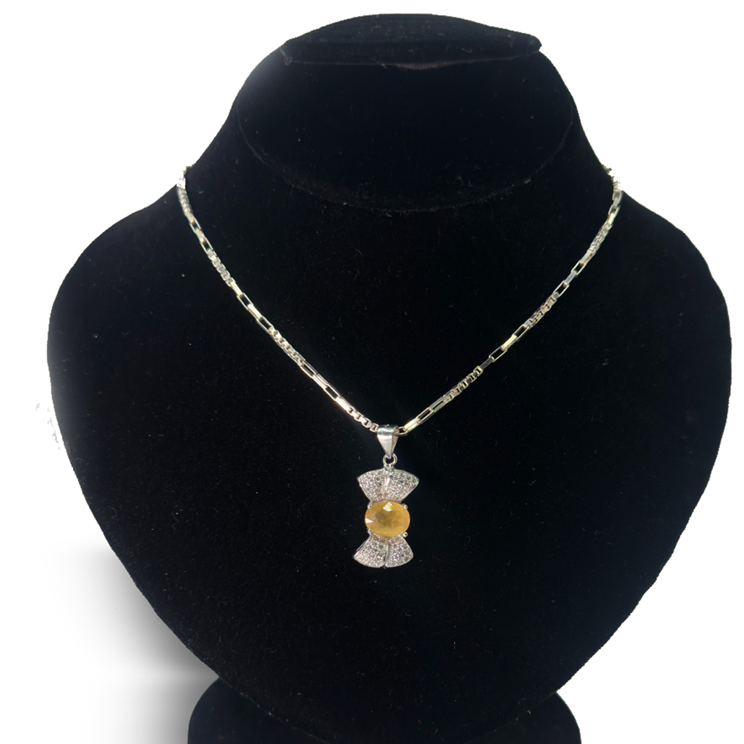 The Yellow Sapphire Zircon Tie Design Set by Jawa Gems combines elegance with modern style. Crafted in pure silver, this complete set includes a pendant, earrings, and a ring, all showcasing vibrant yellow sapphires surrounded by zircon accents. Yellow sapphires are believed to attract wealth, enhance intellect, and promote success in all areas of life.